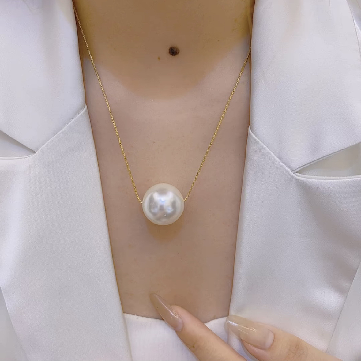 钛钢不掉色路路通大号一颗珍珠项链时尚百搭小众设计感气质锁骨链