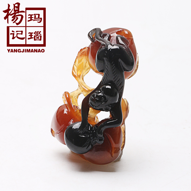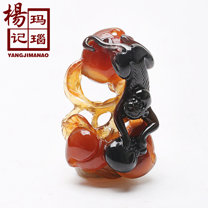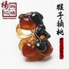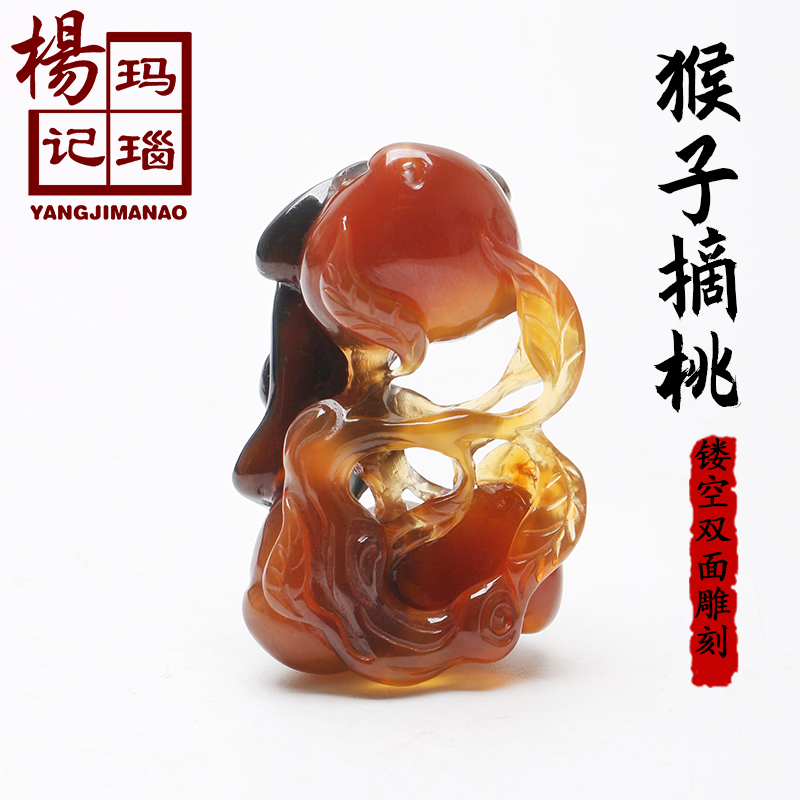 天然玛瑙手工雕刻吊坠生肖猴猴子摘桃俏色镂空雕刻