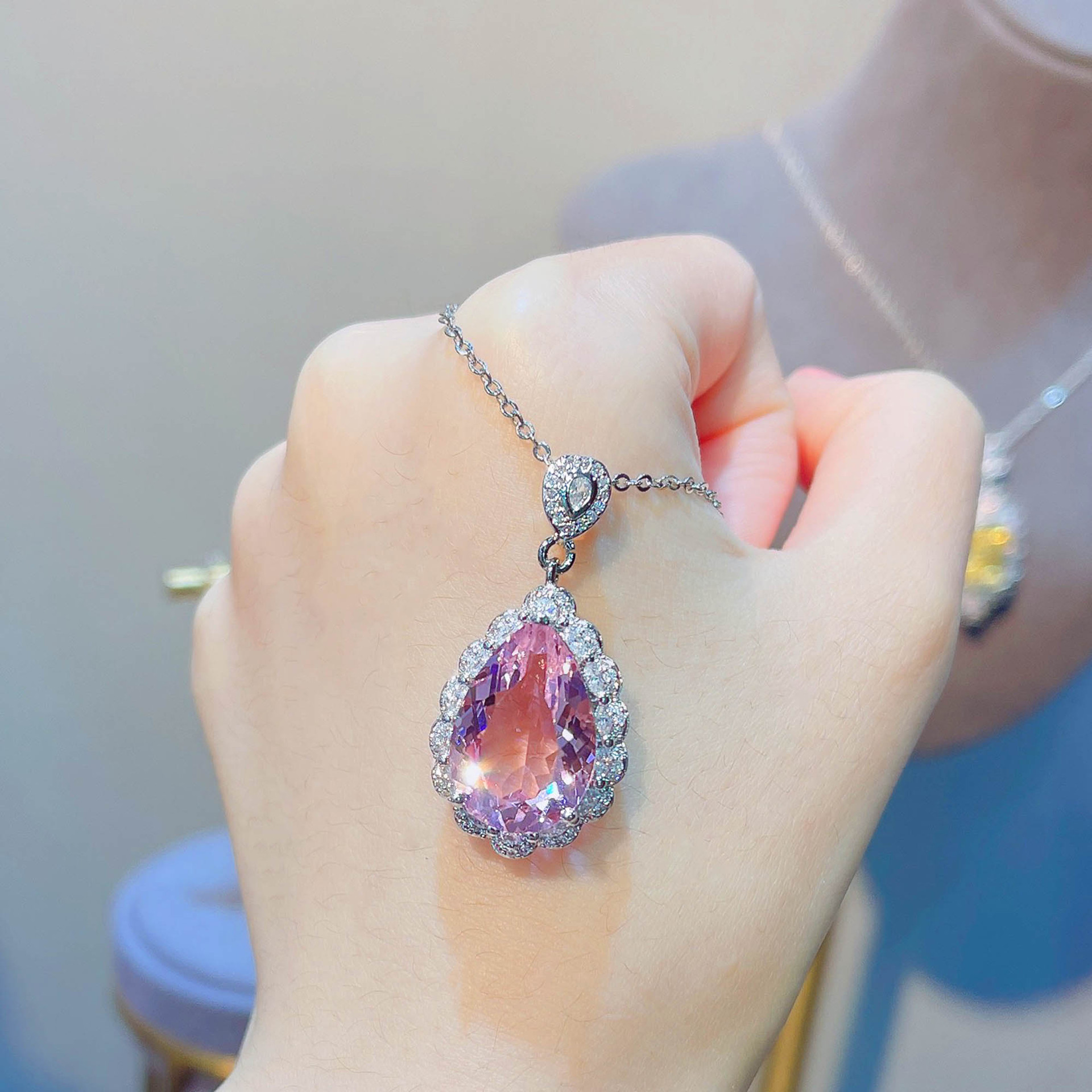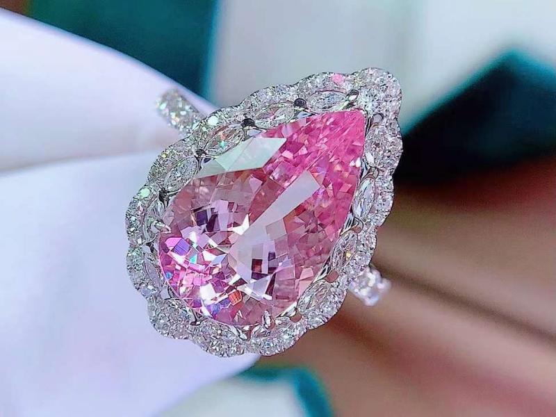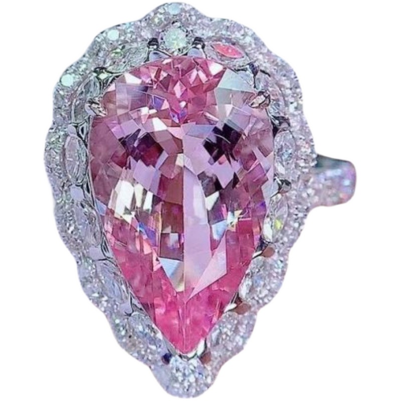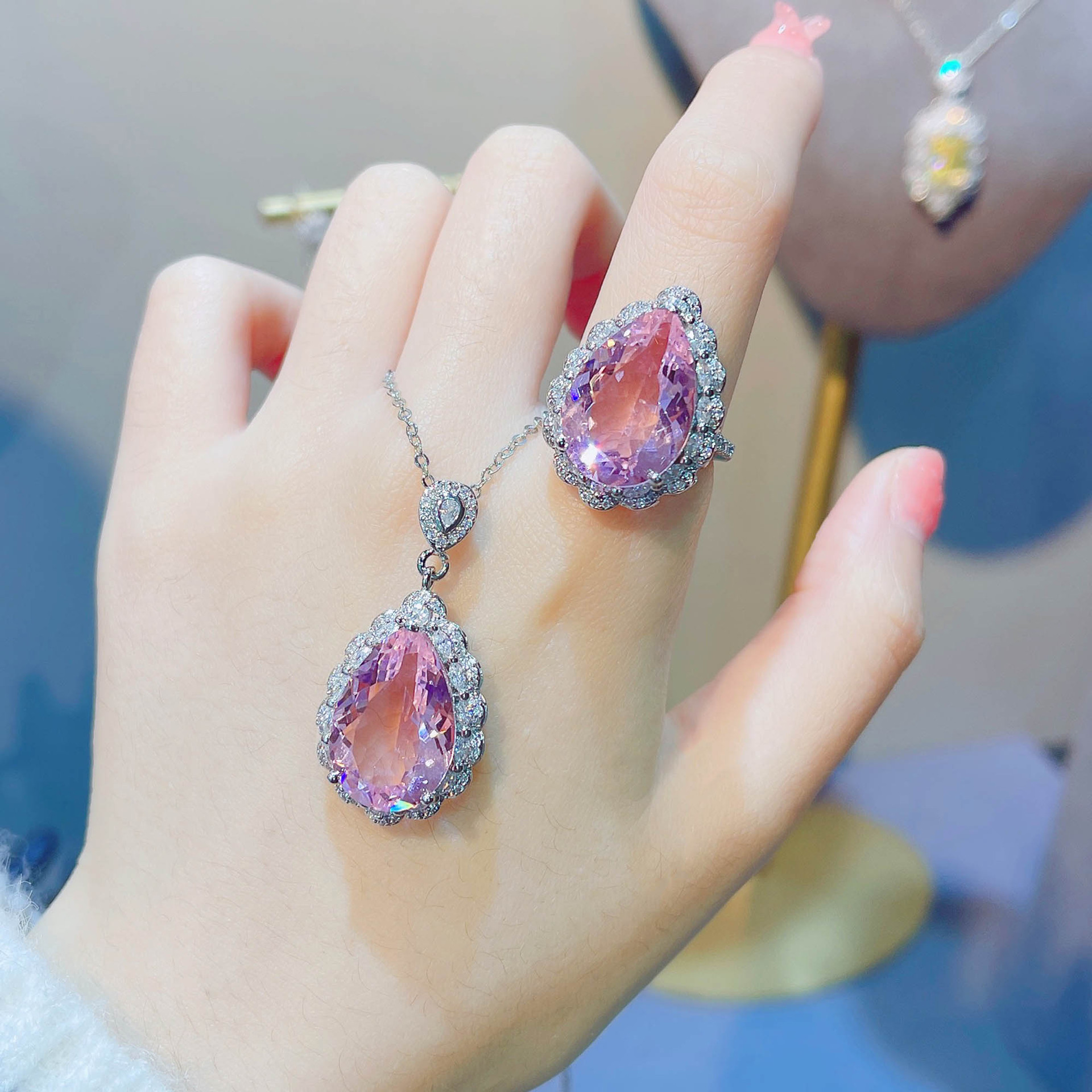 7.5克拉鸟巢切工水滴形樱花粉色摩根石吊坠活口可调彩宝戒指套装