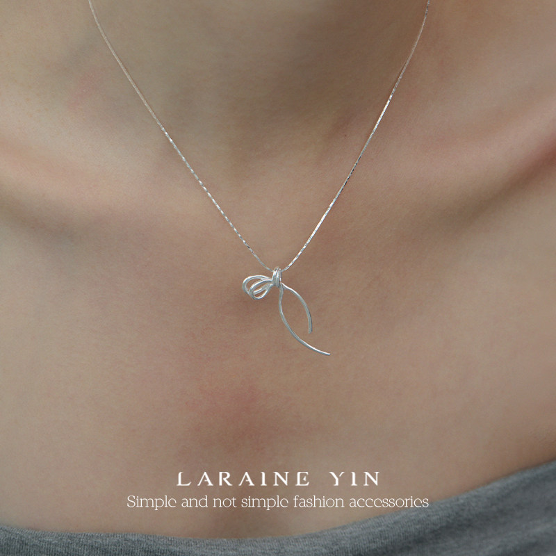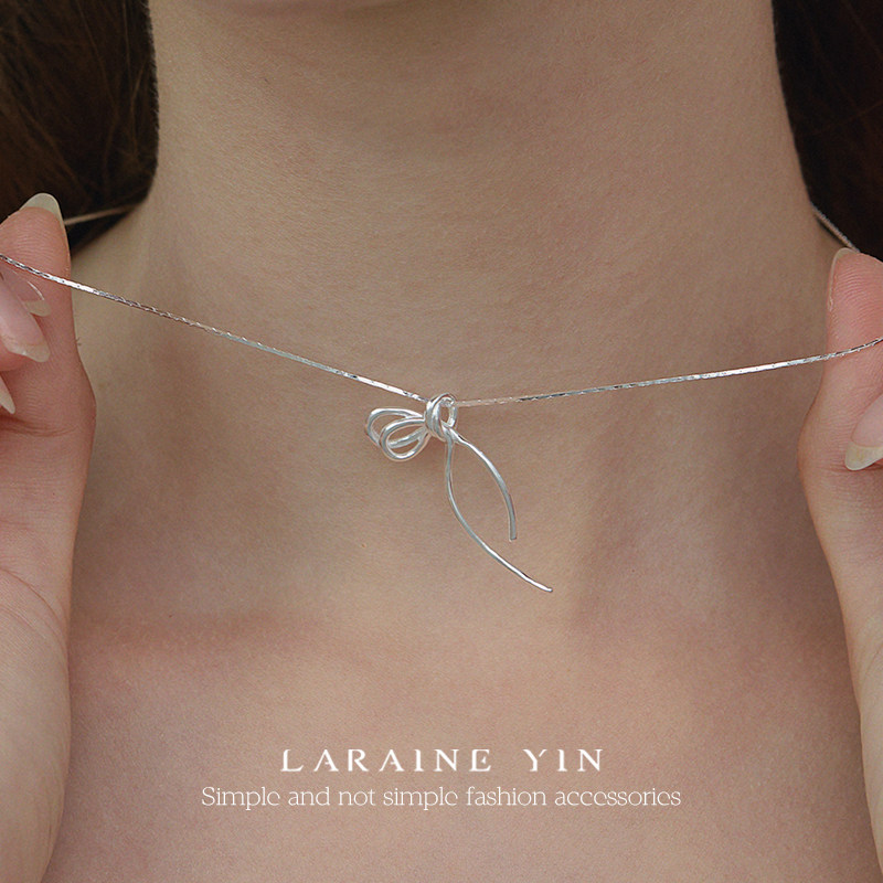 LARAINE YIN简约蝴蝶结纯银项链百搭气质锁骨链甜酷冷淡风脖颈链