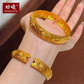 宽版牡丹花手镯仿真黄金实心轮胎复古花朵新中式国风复古镯子