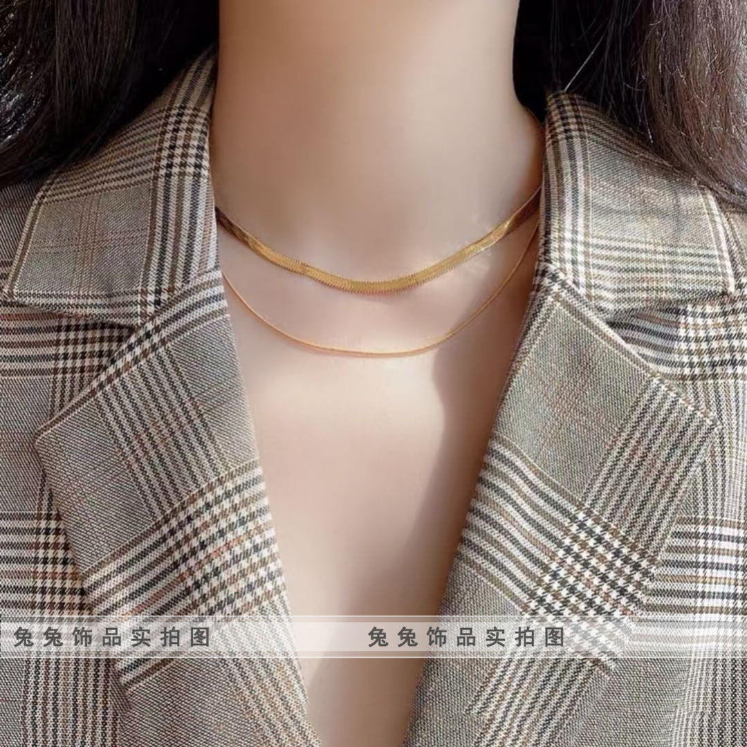 【钛钢不掉色】保色细蛇骨链小方蛇闪亮闺蜜锁骨链百搭项链礼物女