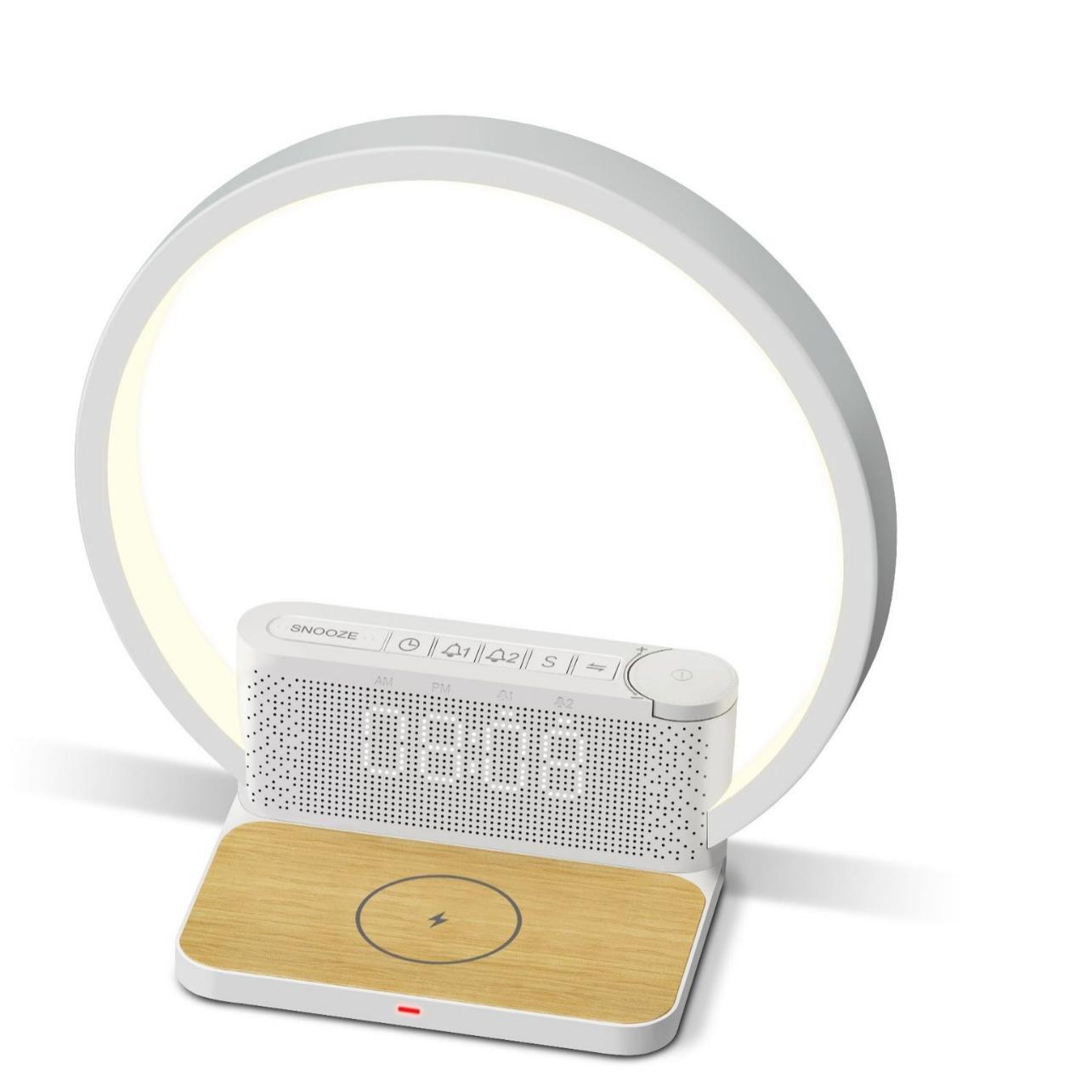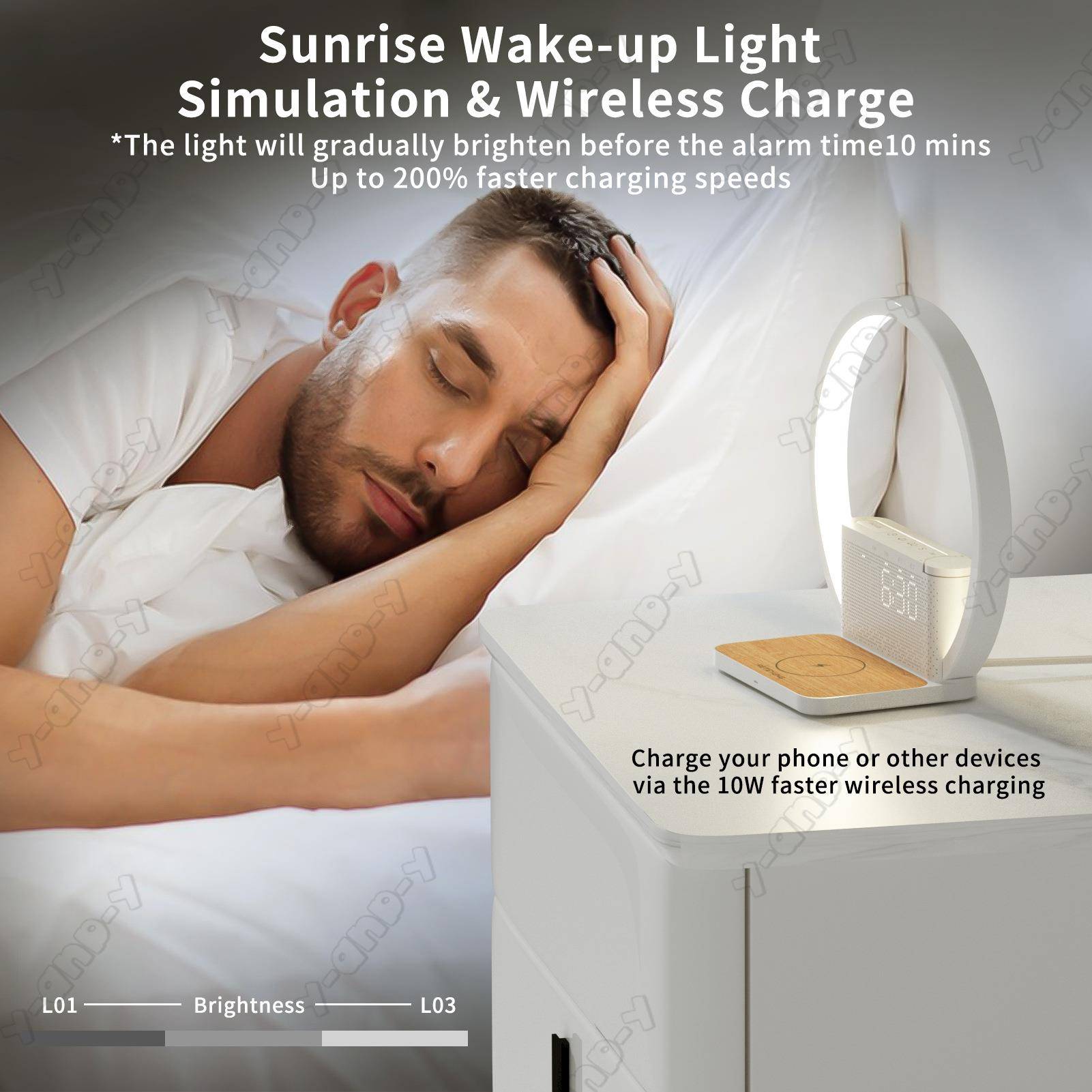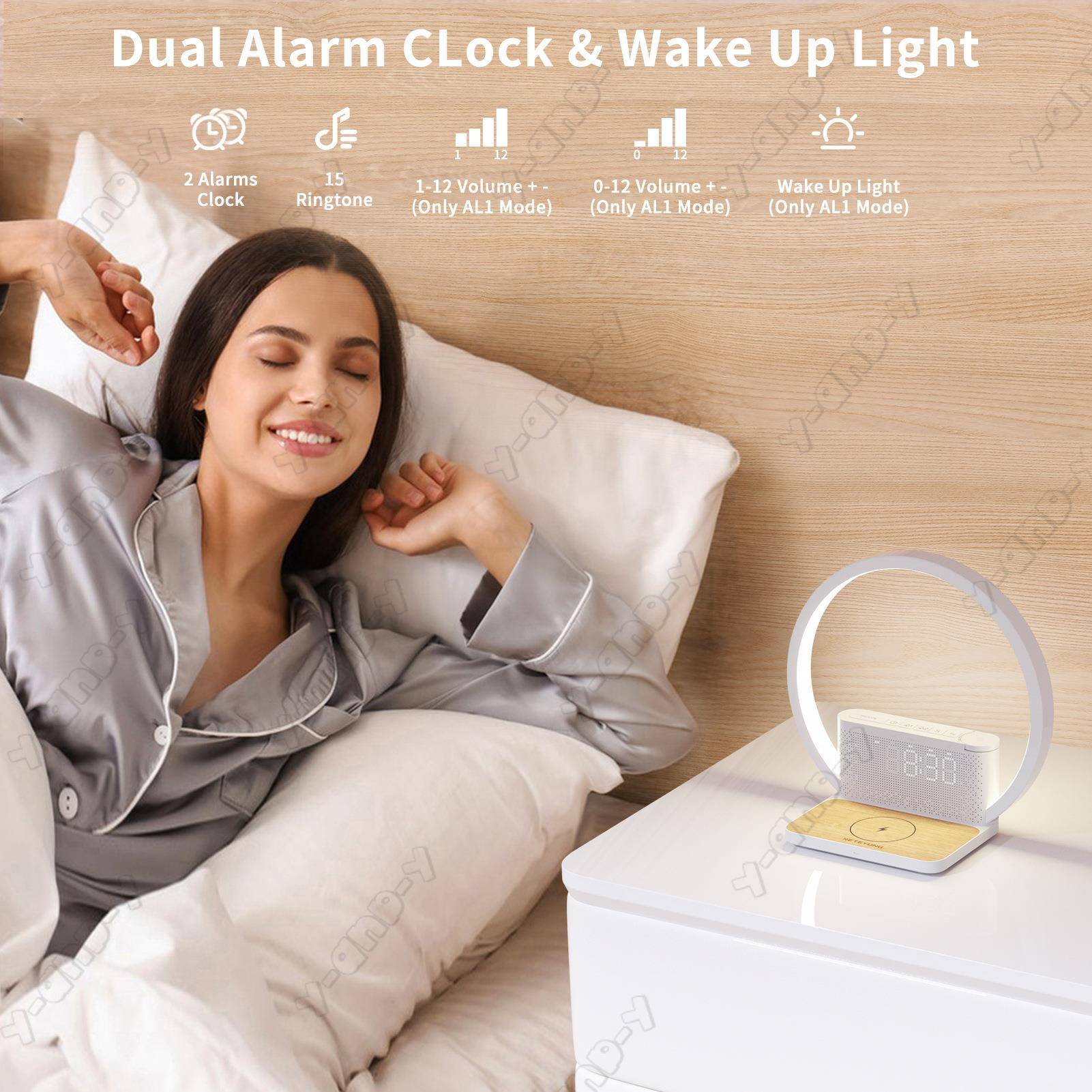 床头唤醒灯双闹钟10W无线充电器白噪声入眠三档触摸台灯夜灯阅读