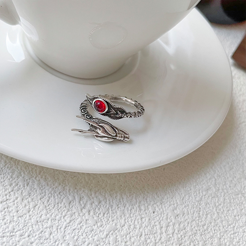 龙年泰银戒指男跨境爆款开口指环红色宝石饰品925纯银戒指女