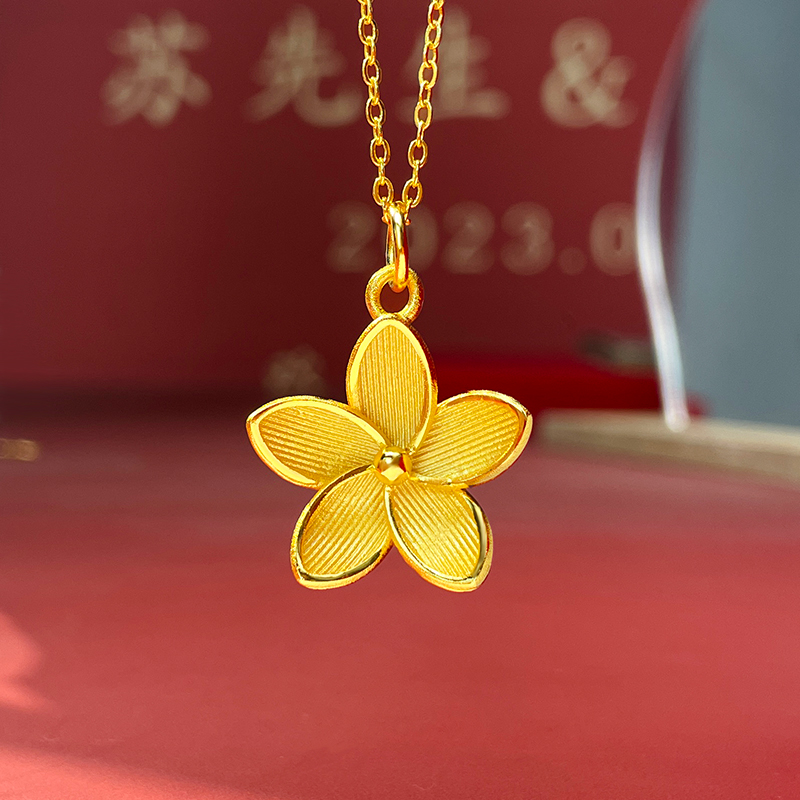 幸福花嫁系列三金吊坠项链锁骨链婚嫁首饰古法沙金镀金吊坠女