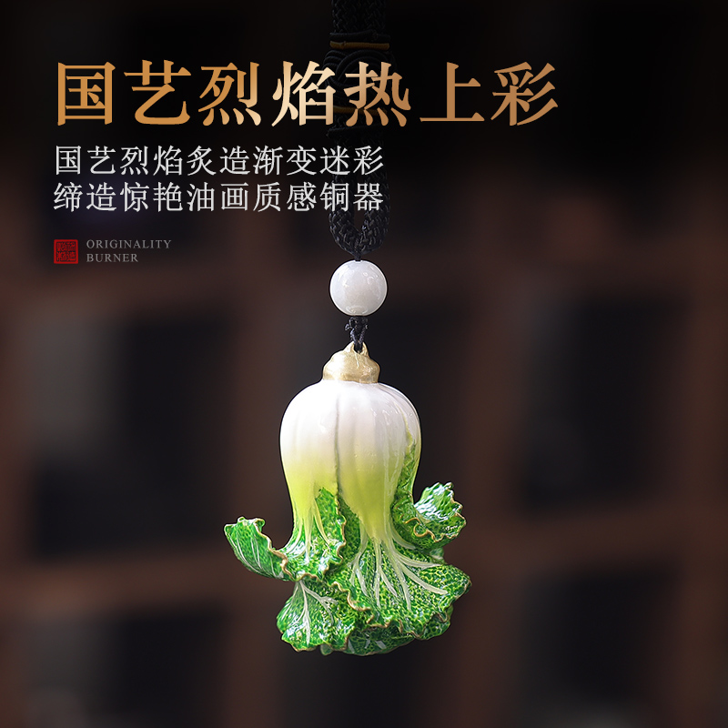 白菜纯黄铜小号摆件百财创意车载吊坠挂件手中有财收银台手把玩件