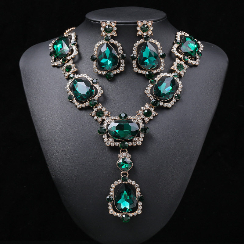 欧美外贸新款夸张复古项链套装超大个性时尚锁骨链女合金镶嵌宝石