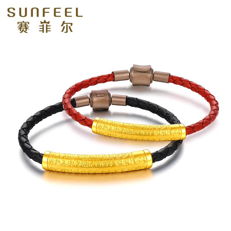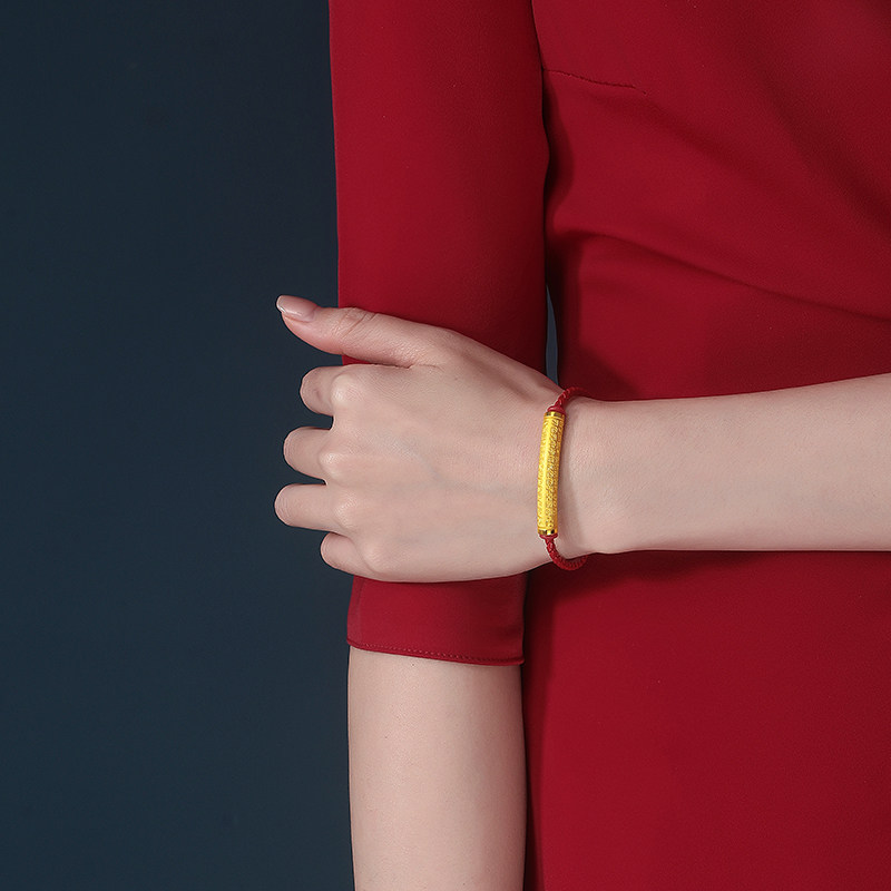 赛菲尔黄金手链3D硬金心经筒手串足金转运珠手链情侣款圣诞礼物