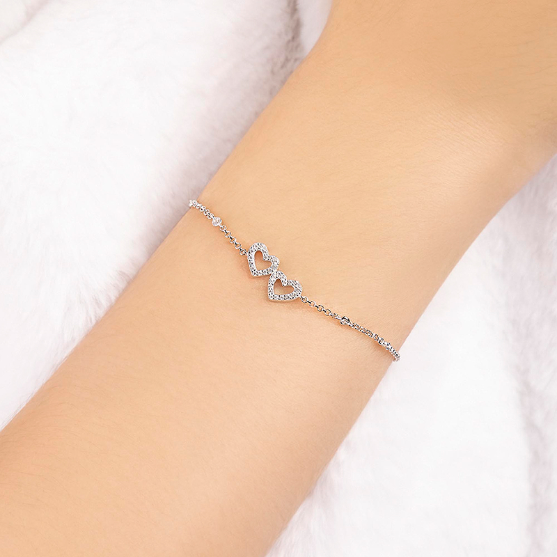 [新品]APM Monaco爱心可调节手链银白色密镶心形镂空趣味手饰简约