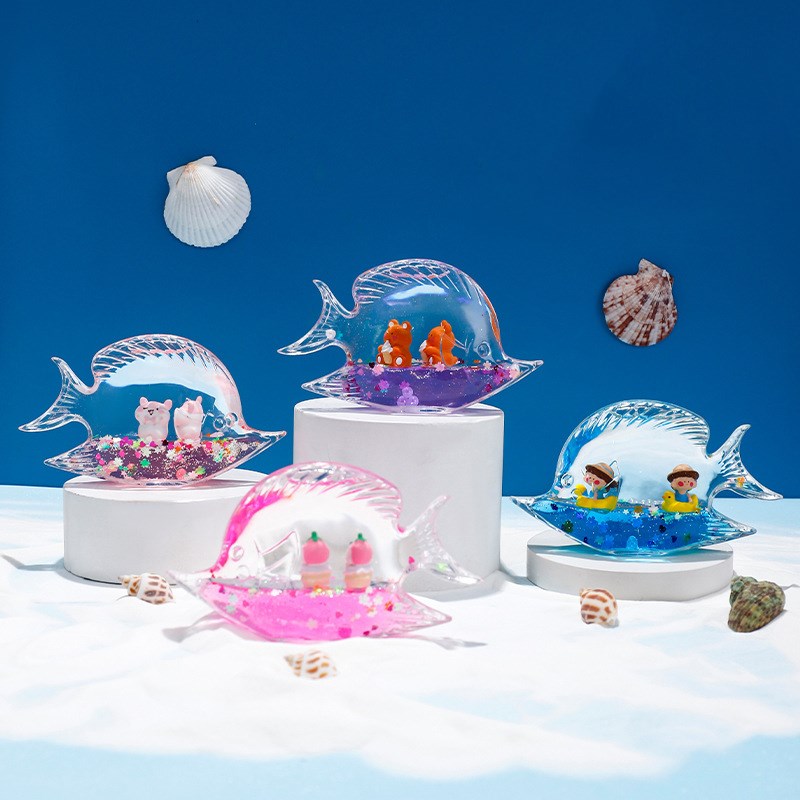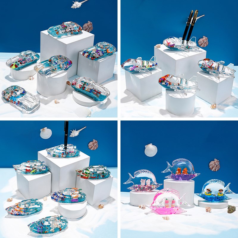 海洋世界流动水液体油滴摆件创意飞机老爷车轮船模型笔插学生礼品