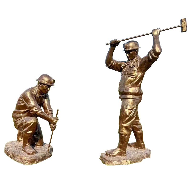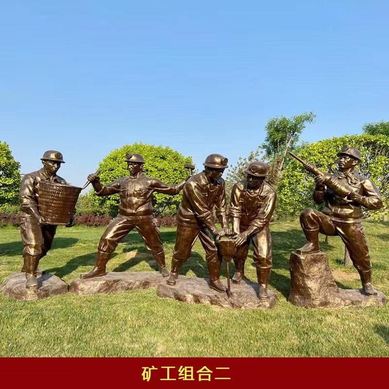 玻璃钢树脂矿工农民工铸铜情景人物模型铁路工人城市广场雕塑摆件