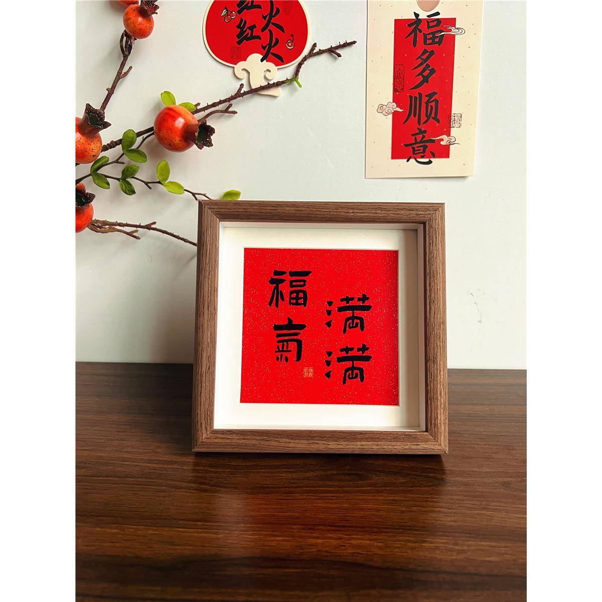 新中式红色喜庆相框摆台祝福书法文字摆画入户玄关桌面装饰摆件