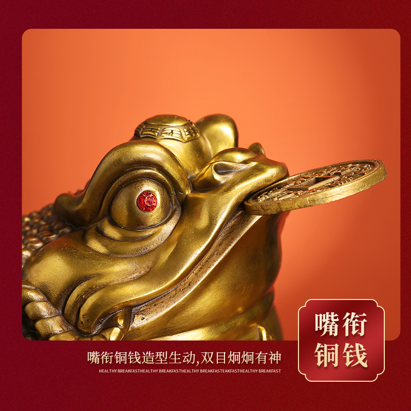 铜金蟾摆件三足金蟾蜍日进斗金如意三脚金蝉办公室店铺开业礼品