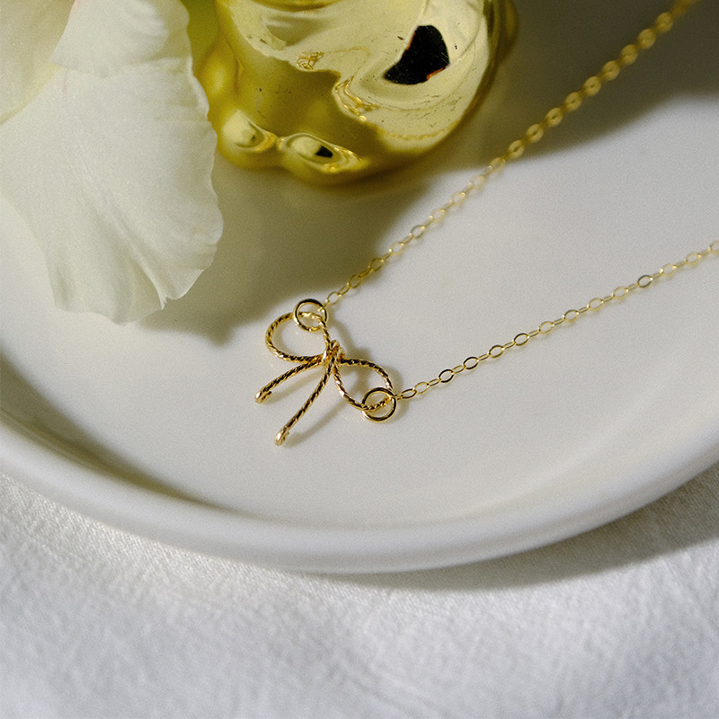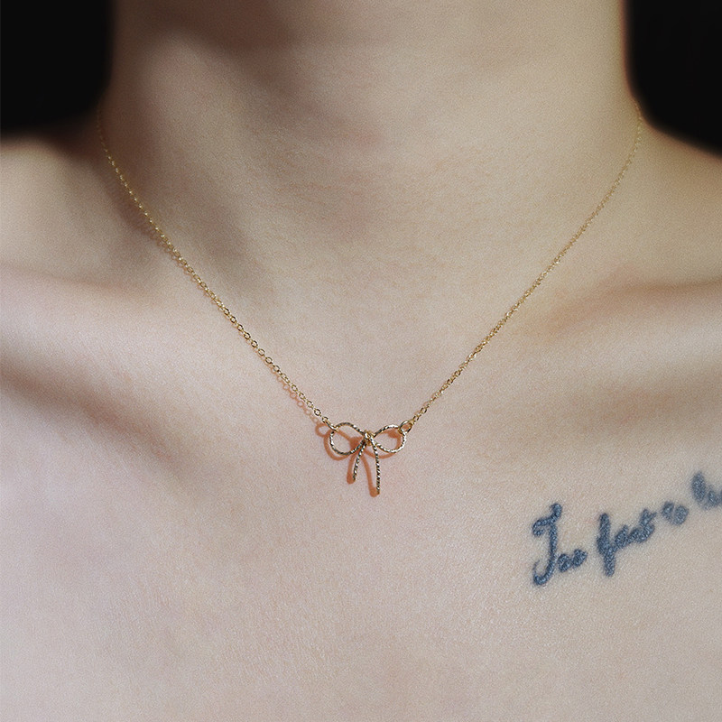 UNELGE手作新品蝴蝶结项链包金简约日常百搭春日小精致女锁骨链