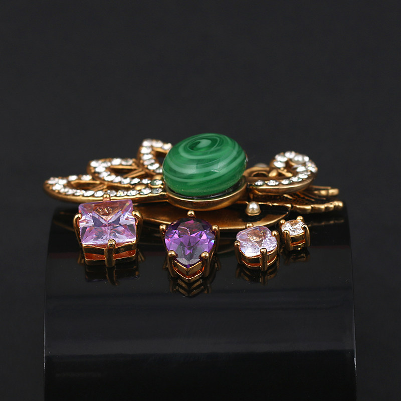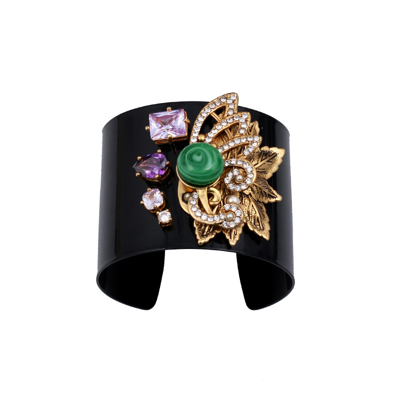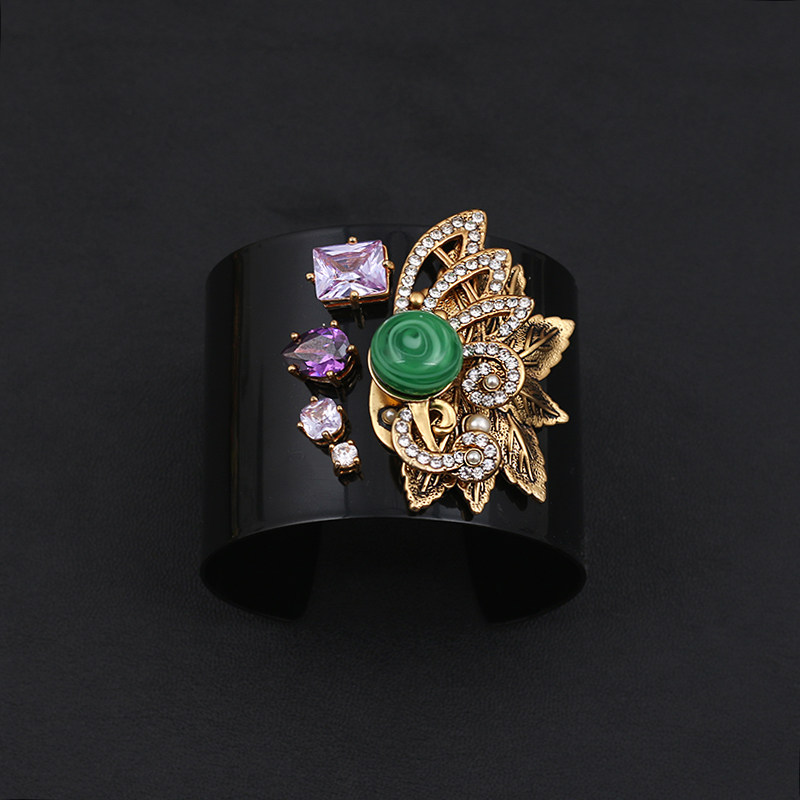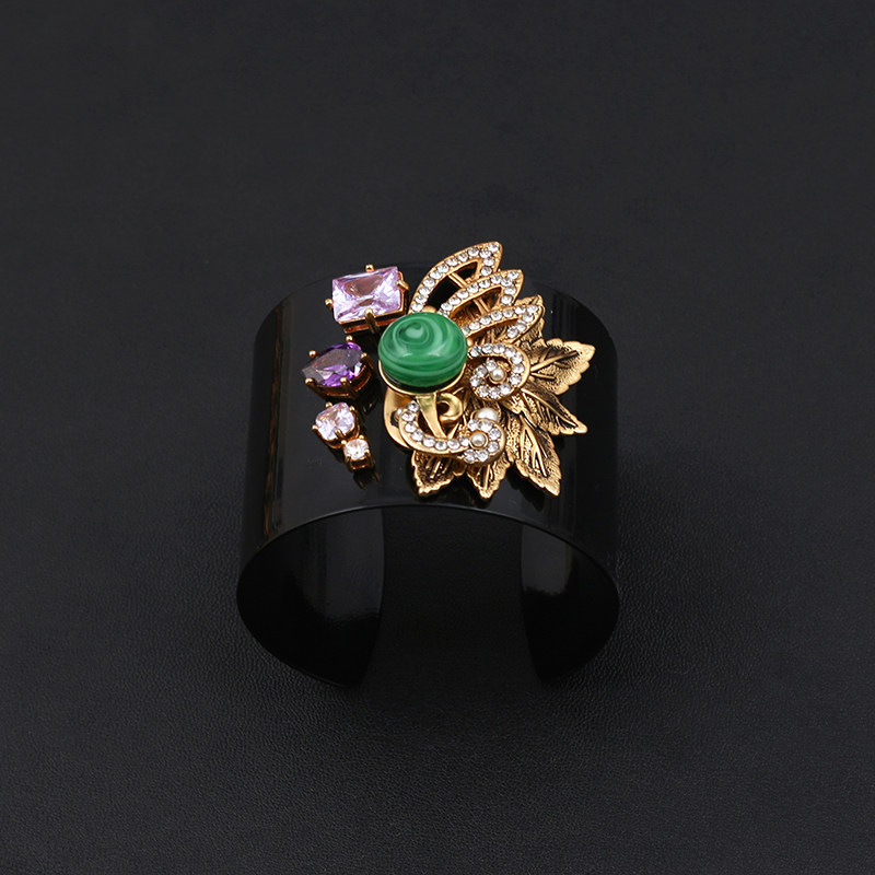 黑色珐琅釉绿宝石开口手环镶钻琉璃手镯西洋复古风重工首饰