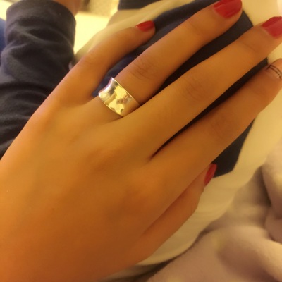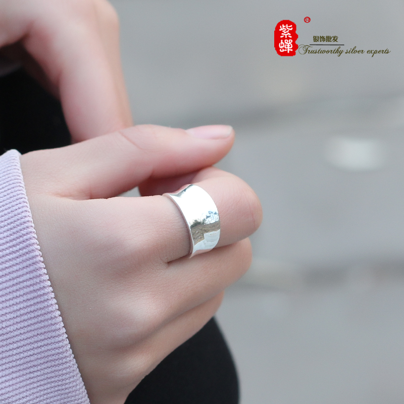 紫蝉银饰S925纯银戒指女食指戒光板宽面简约时尚个性指环素戒尾戒