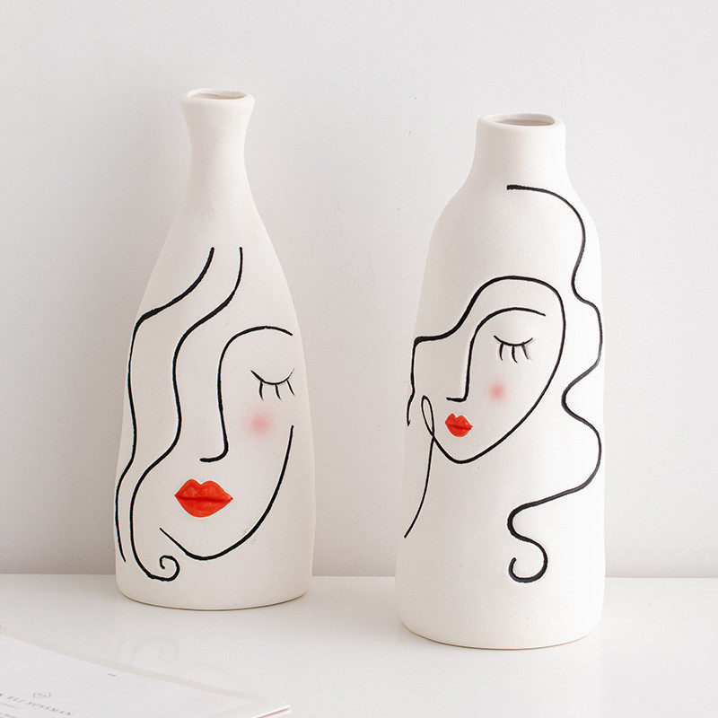 蜀门北欧白色创意陶瓷装饰干花简约客厅插花办公室摆件高级感花瓶