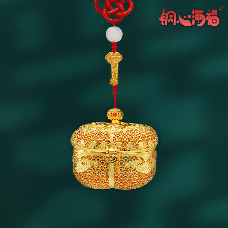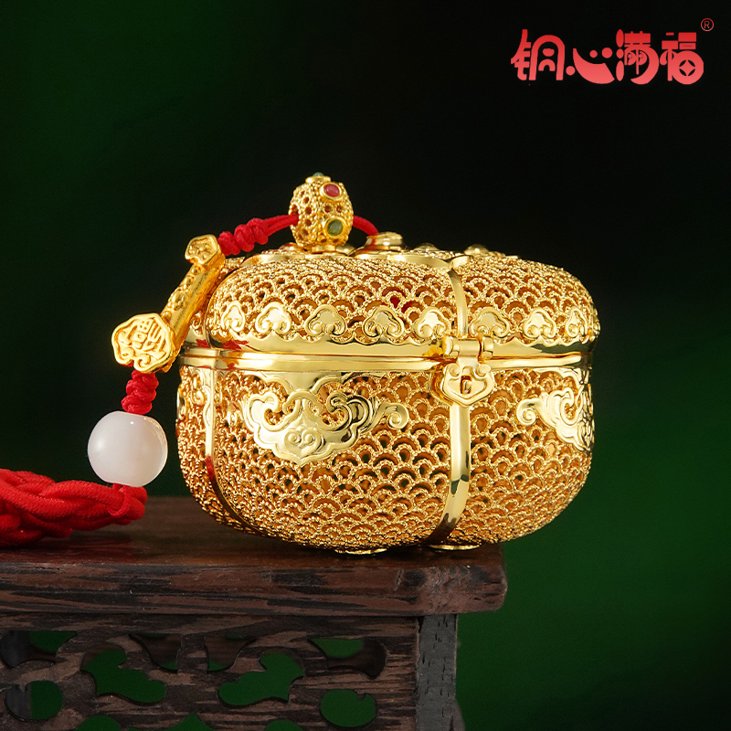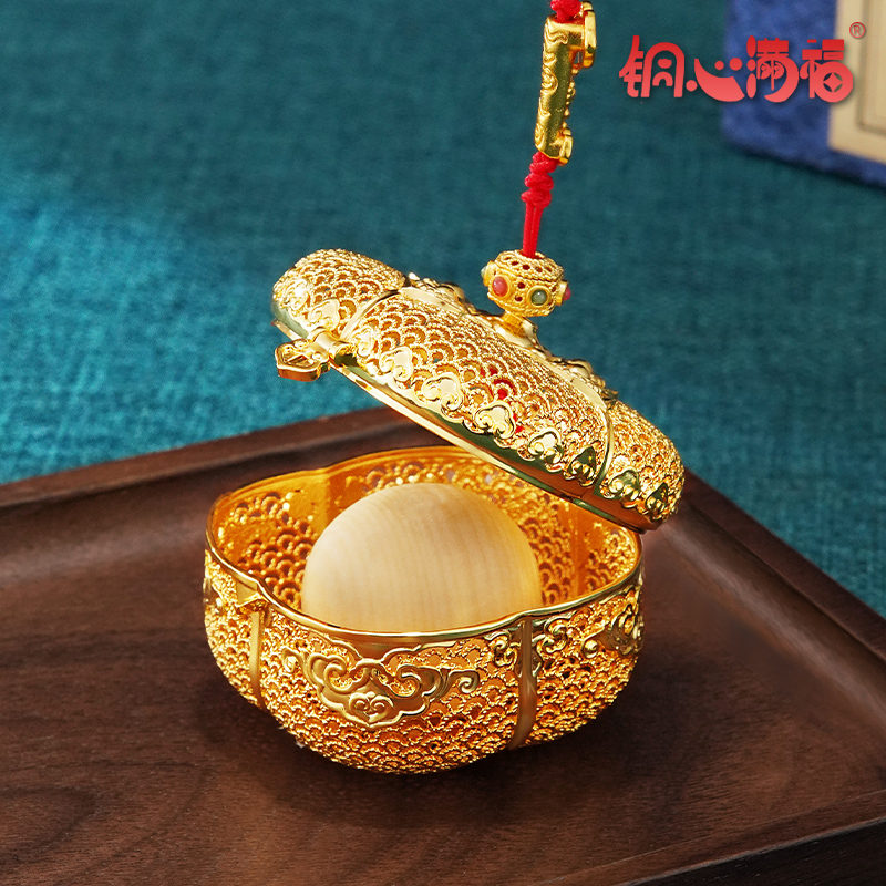 铜心满福《福事多多》花丝鎏金柿子可装香丸黄铜香薰送女友好物推