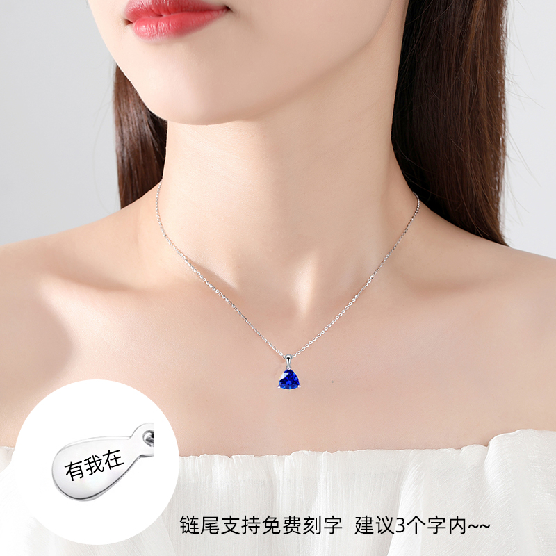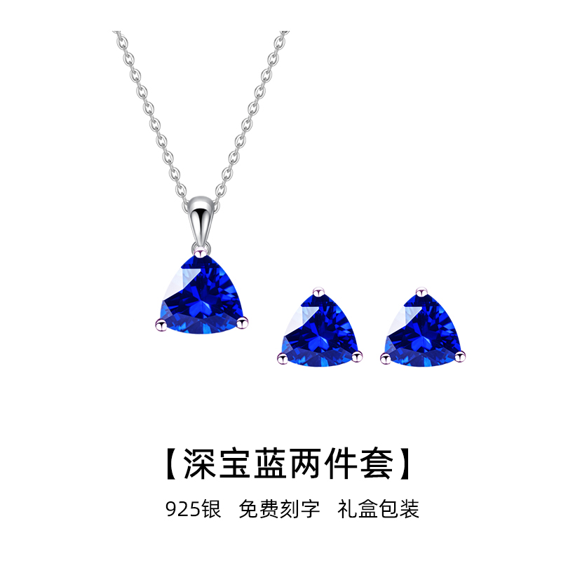 深蓝色925银项链女三角形吊坠款2025新款小众设计时尚锁骨链