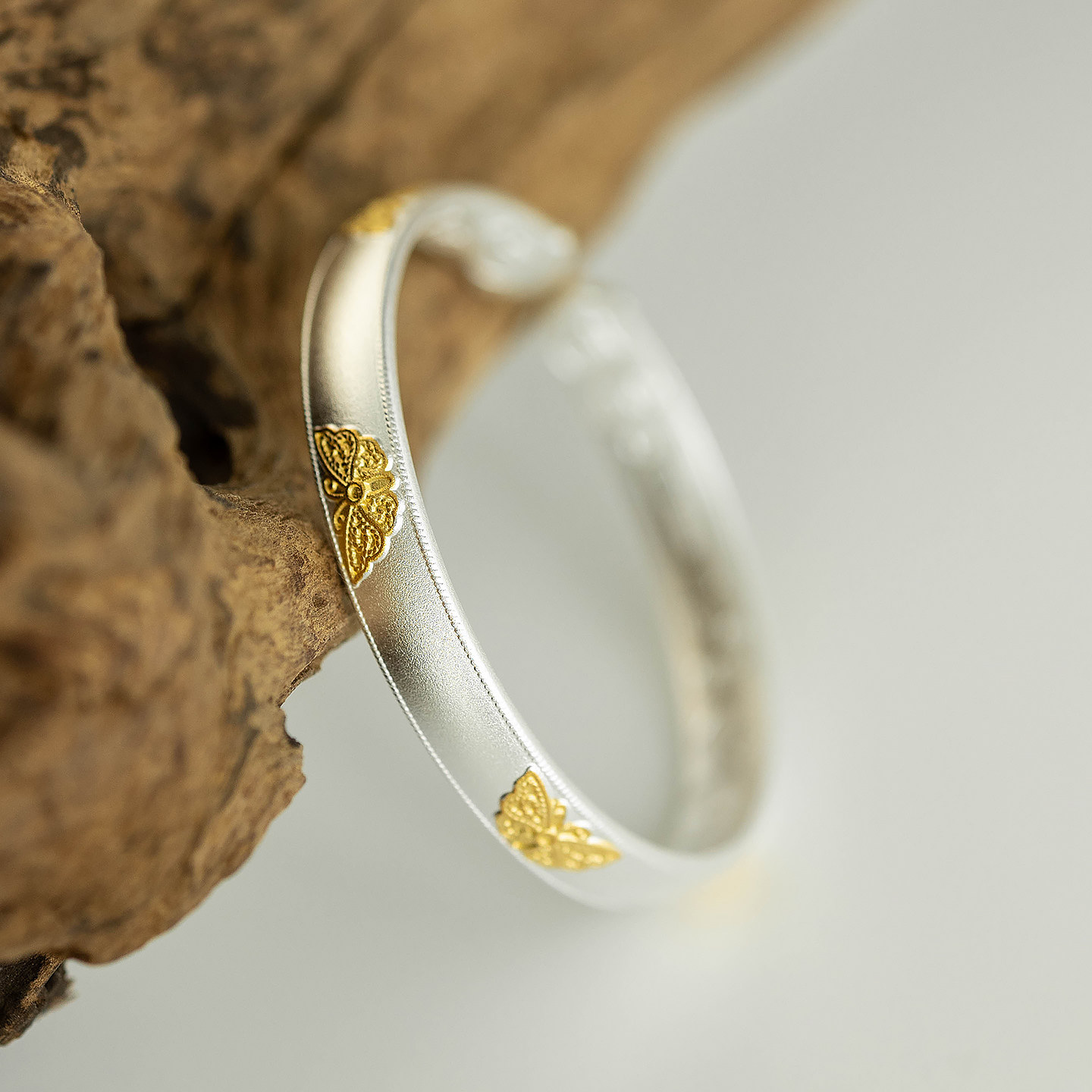 风露 纯银足银999古法描吉言文字金彩蝶开口手镯手环新中式礼物