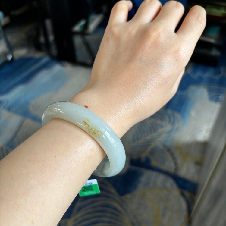 N57.7青花籽料手镯 有原皮 朕®开仓新疆和田玉