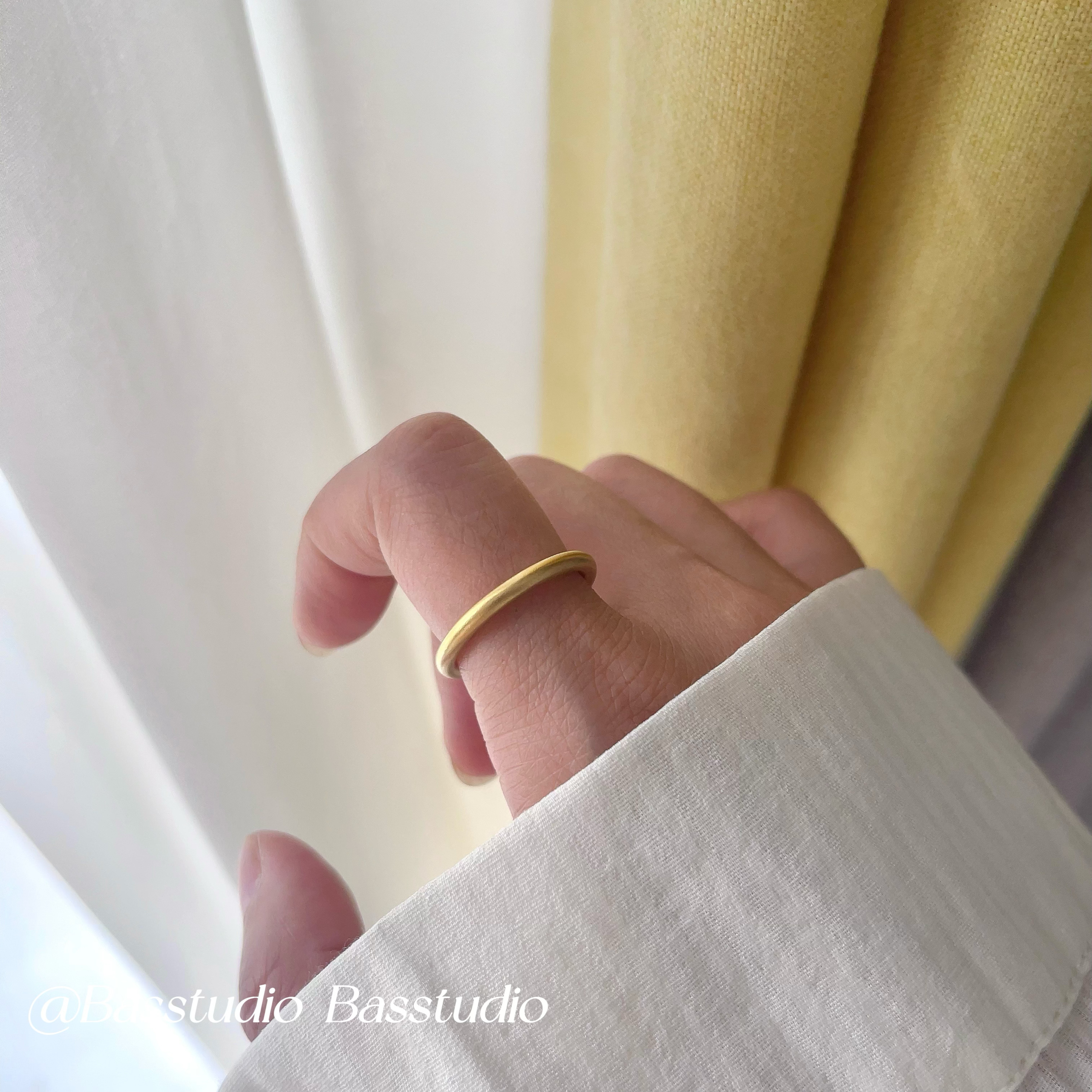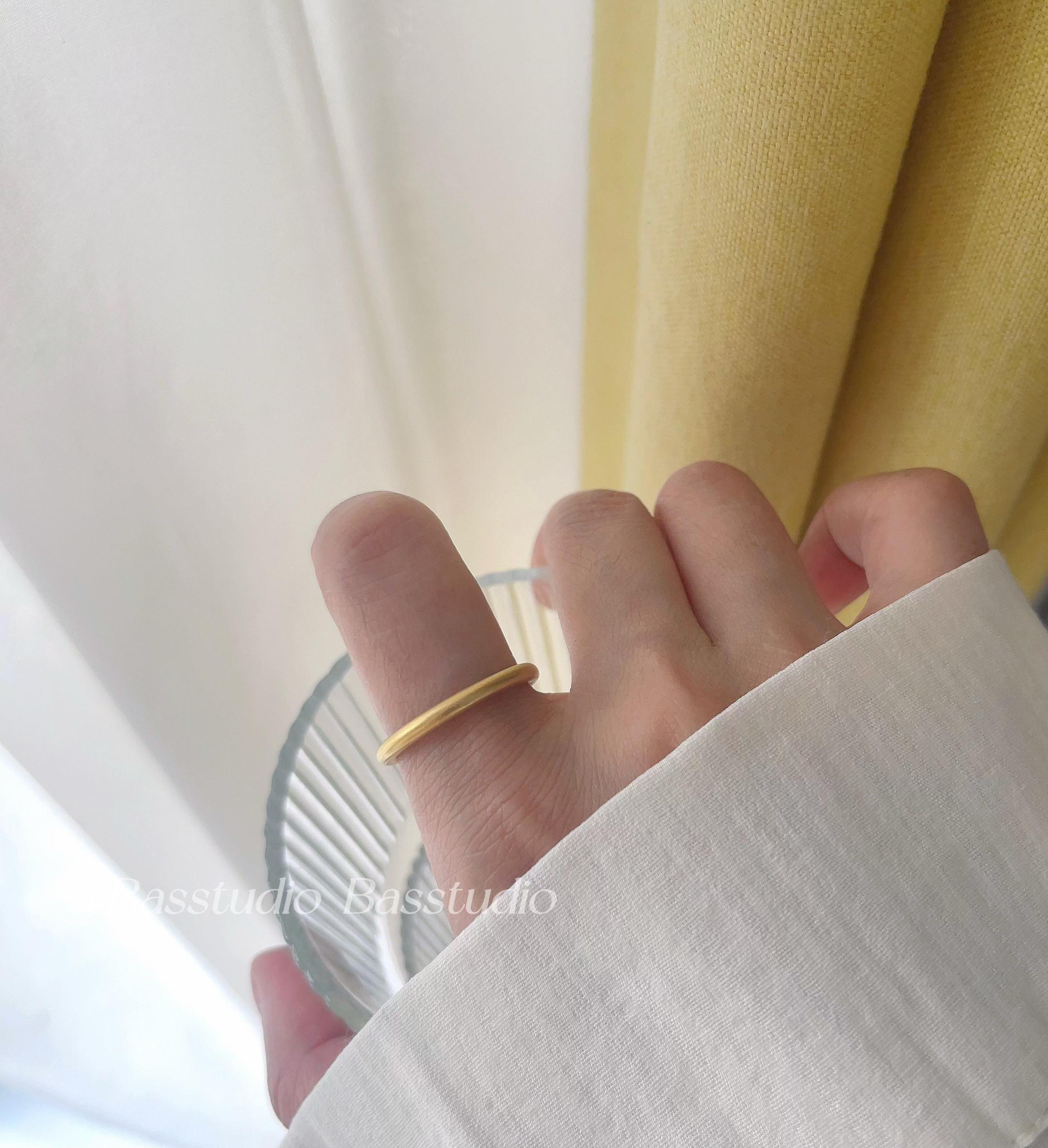 Basstudio 简约不掉色可碰水钛钢古法素圈戒通勤百搭叠戴情侣戒指