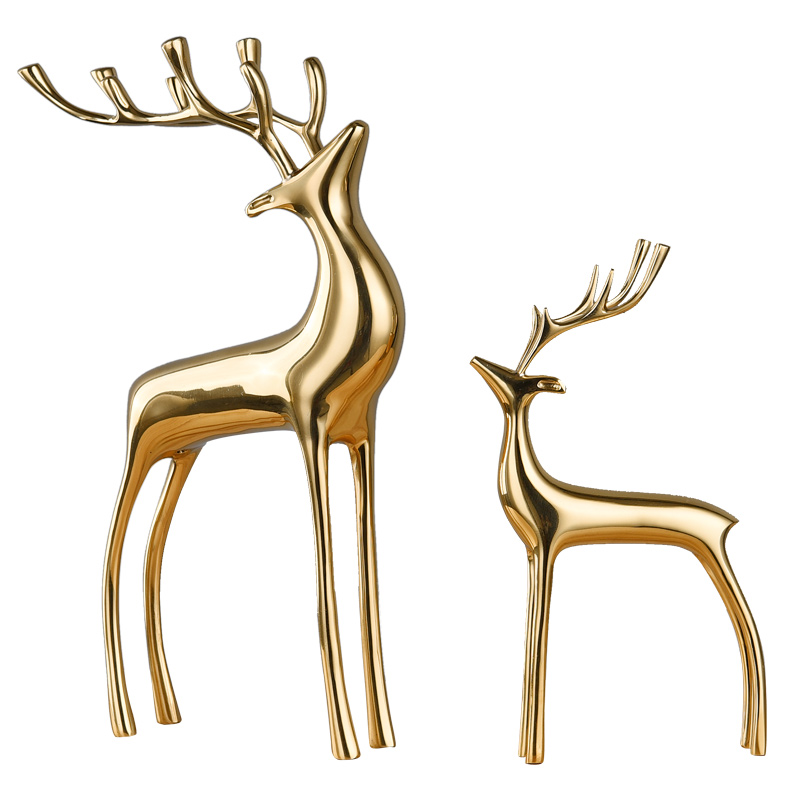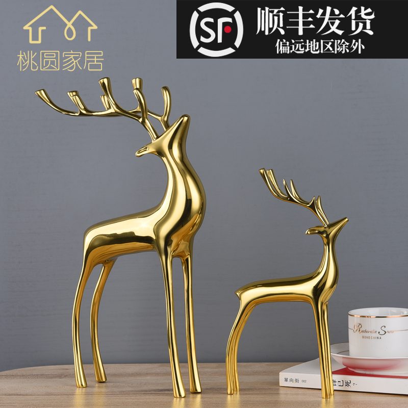 轻奢招财铜鹿摆件客厅电视柜玄关酒柜美式创意设计家居装饰品摆设