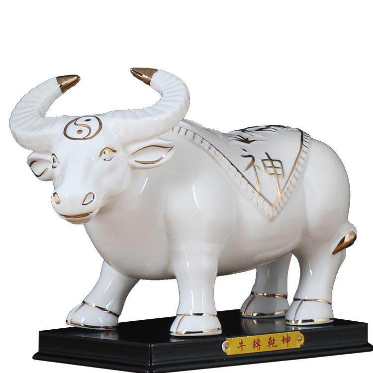 白色陶瓷牛饰品吸引财富和镇屋大小黄色和红色瓷生肖水牛吉祥物装
