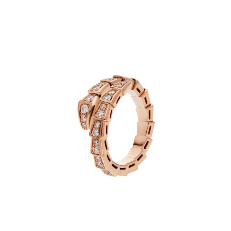 轻奢18k玫瑰金蛇骨戒指女满钻本命年彩金蛇形戒情人节送女友礼物
