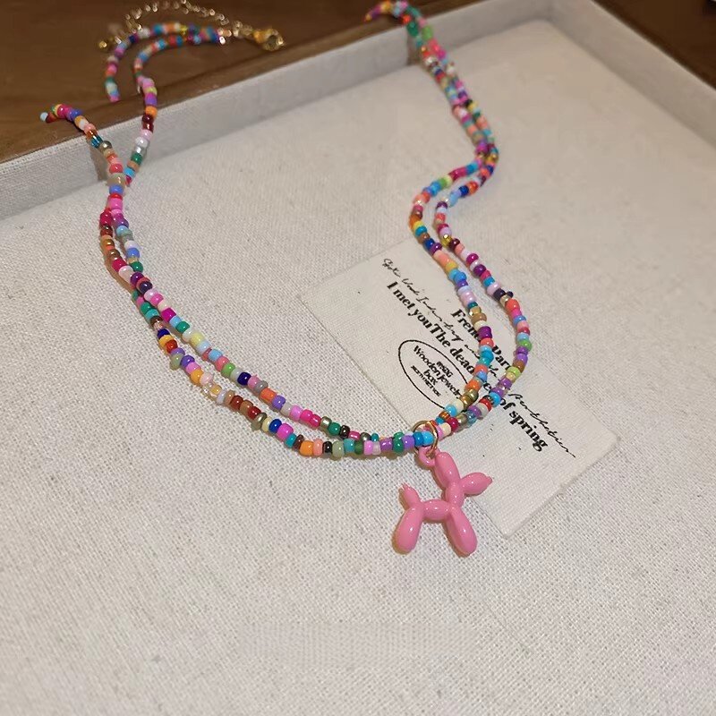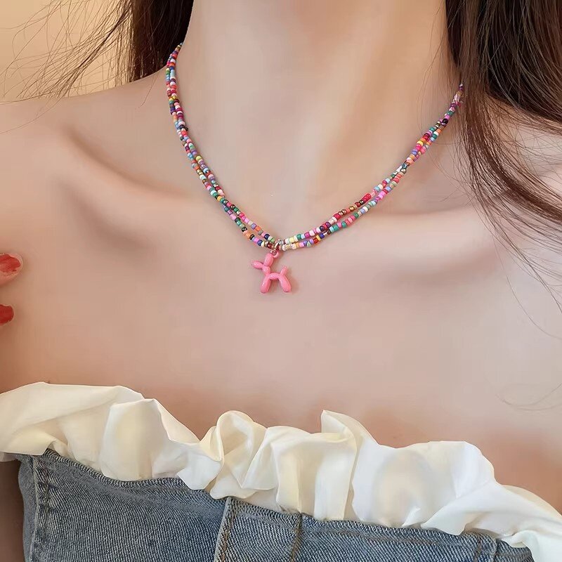 粉色多巴胺彩色项链女款2026新款夏日项圈串珠颈链短款可爱锁骨链