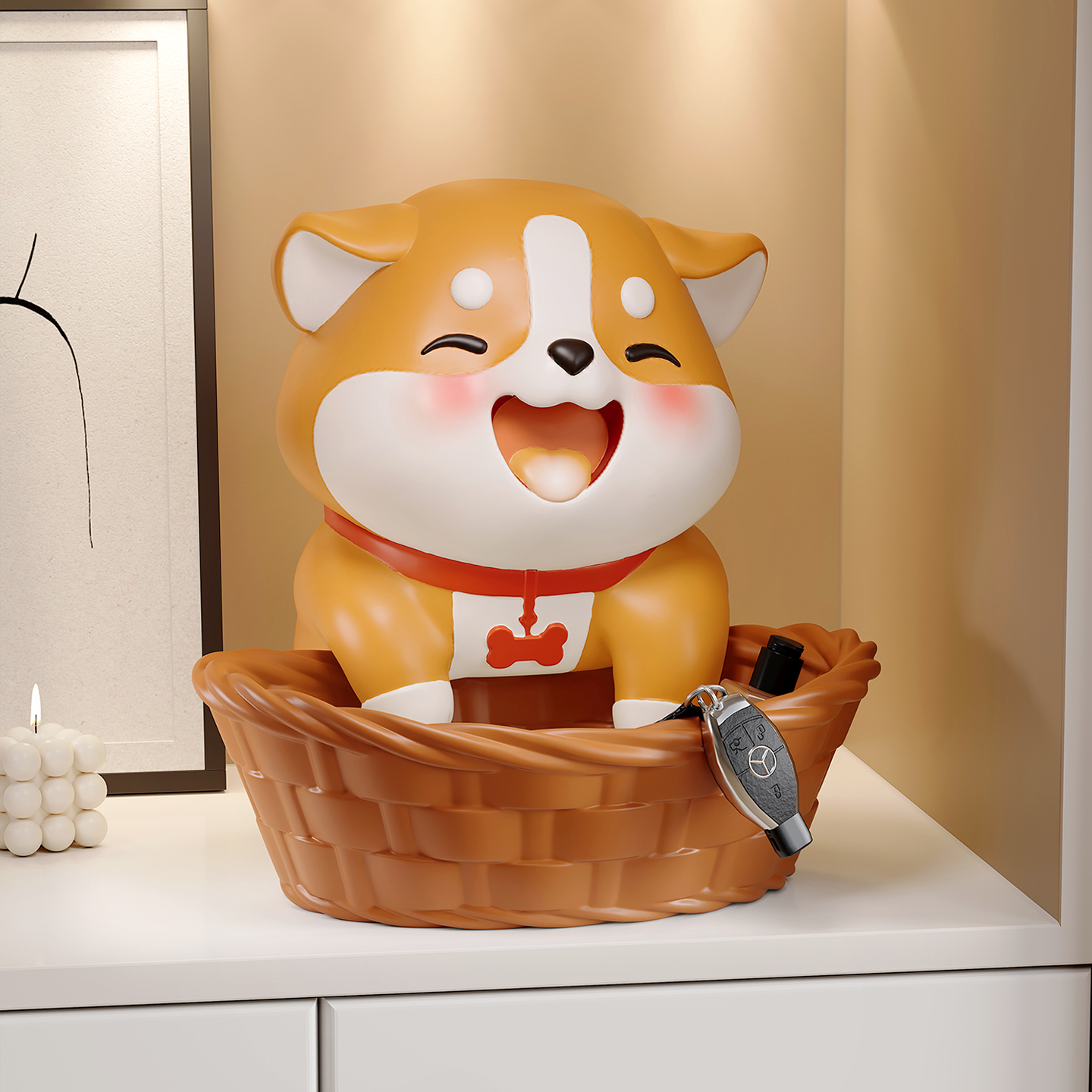 柴犬财源滚滚摆件玄关钥匙遥控器收纳家居客厅桌面装饰品乔迁礼物
