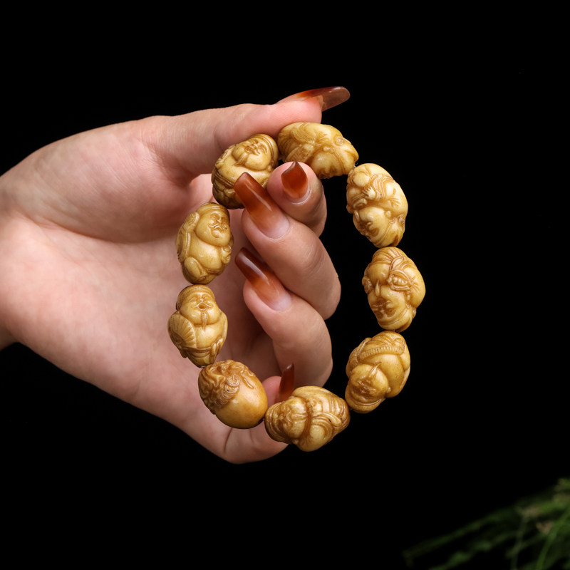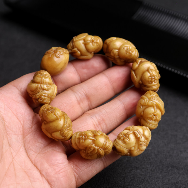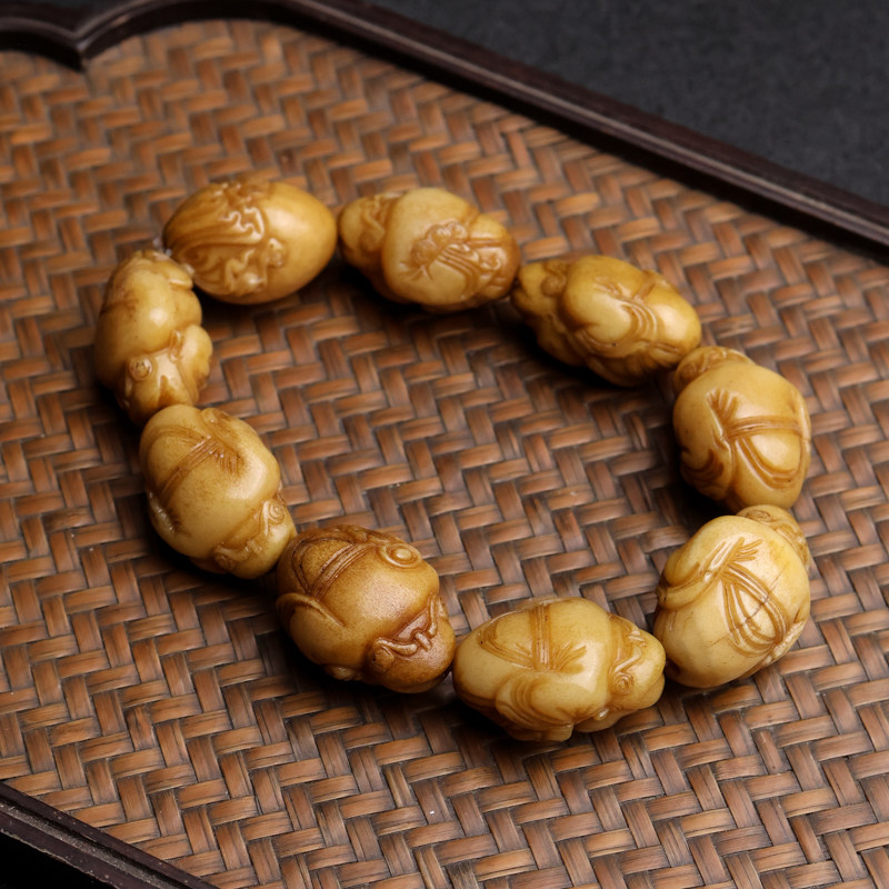 天然老鹿角财神手串佛珠文玩手工雕刻个性款饰品单圈手链霸气