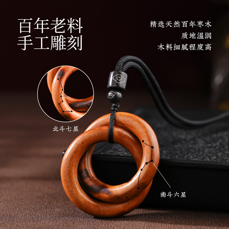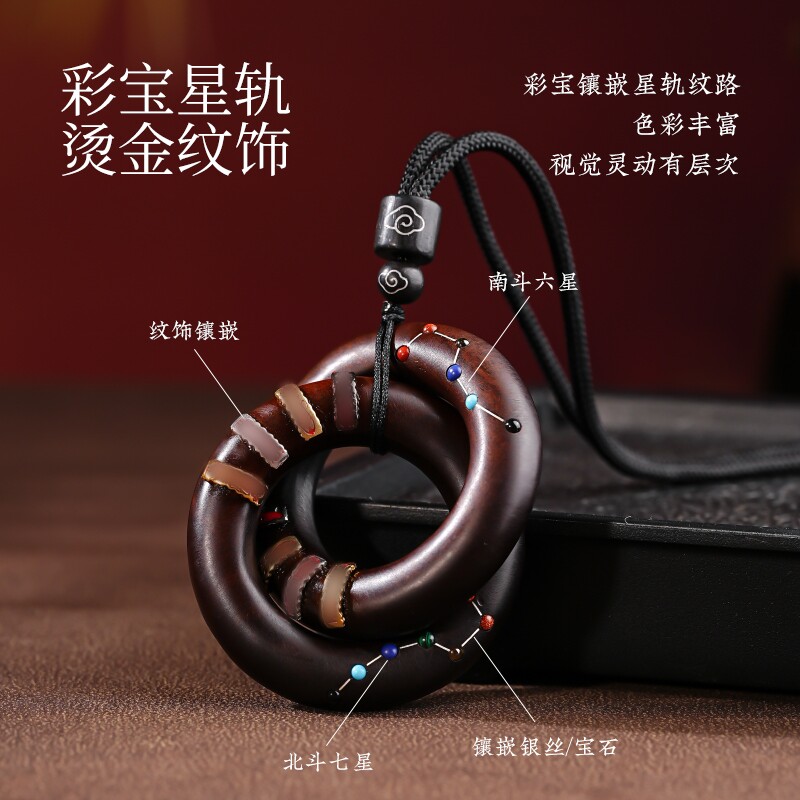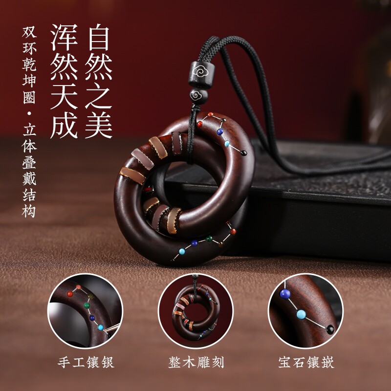 中式阴阳乾坤圈雷击木镶银刻字吊坠南北斗七星玉化男女生项链挂件