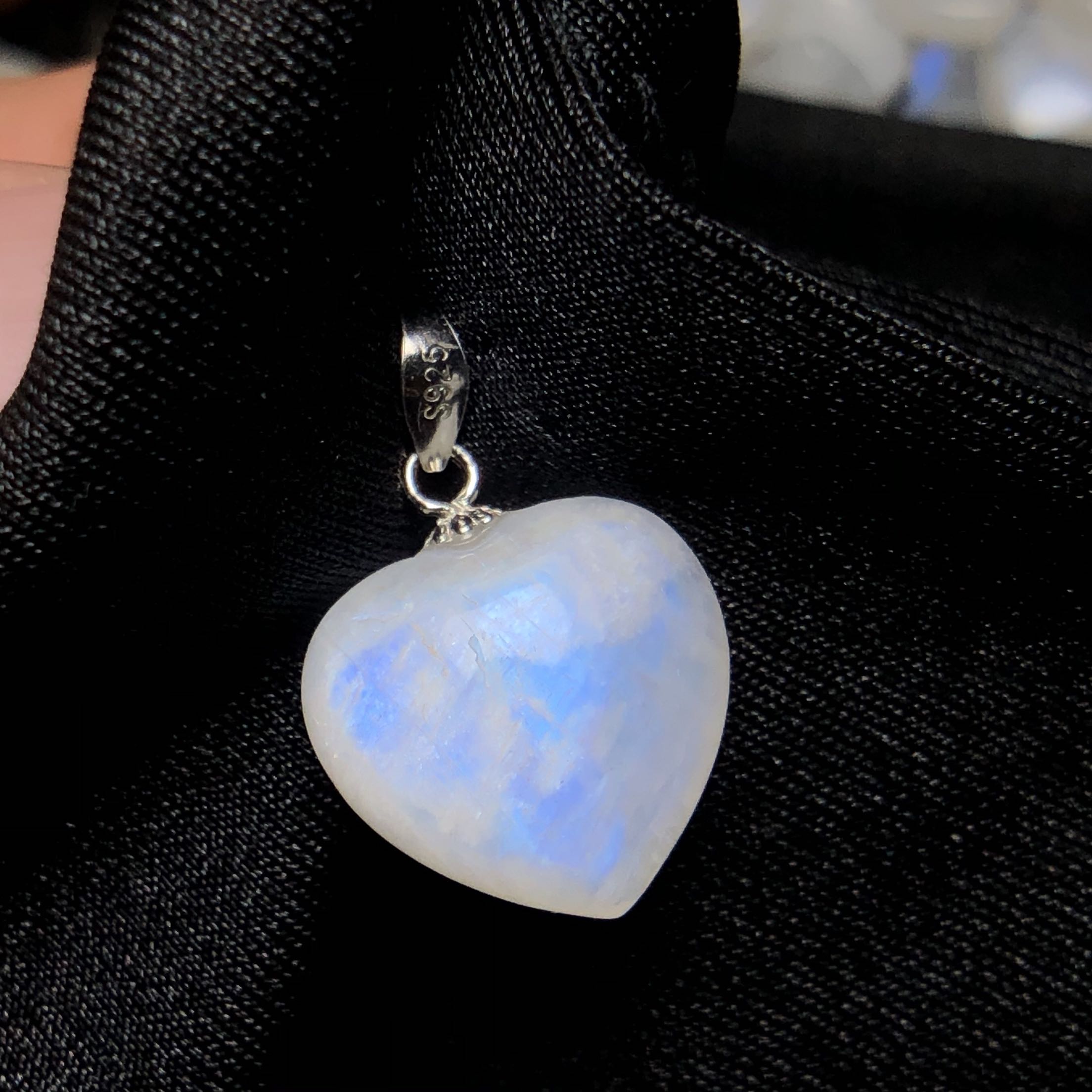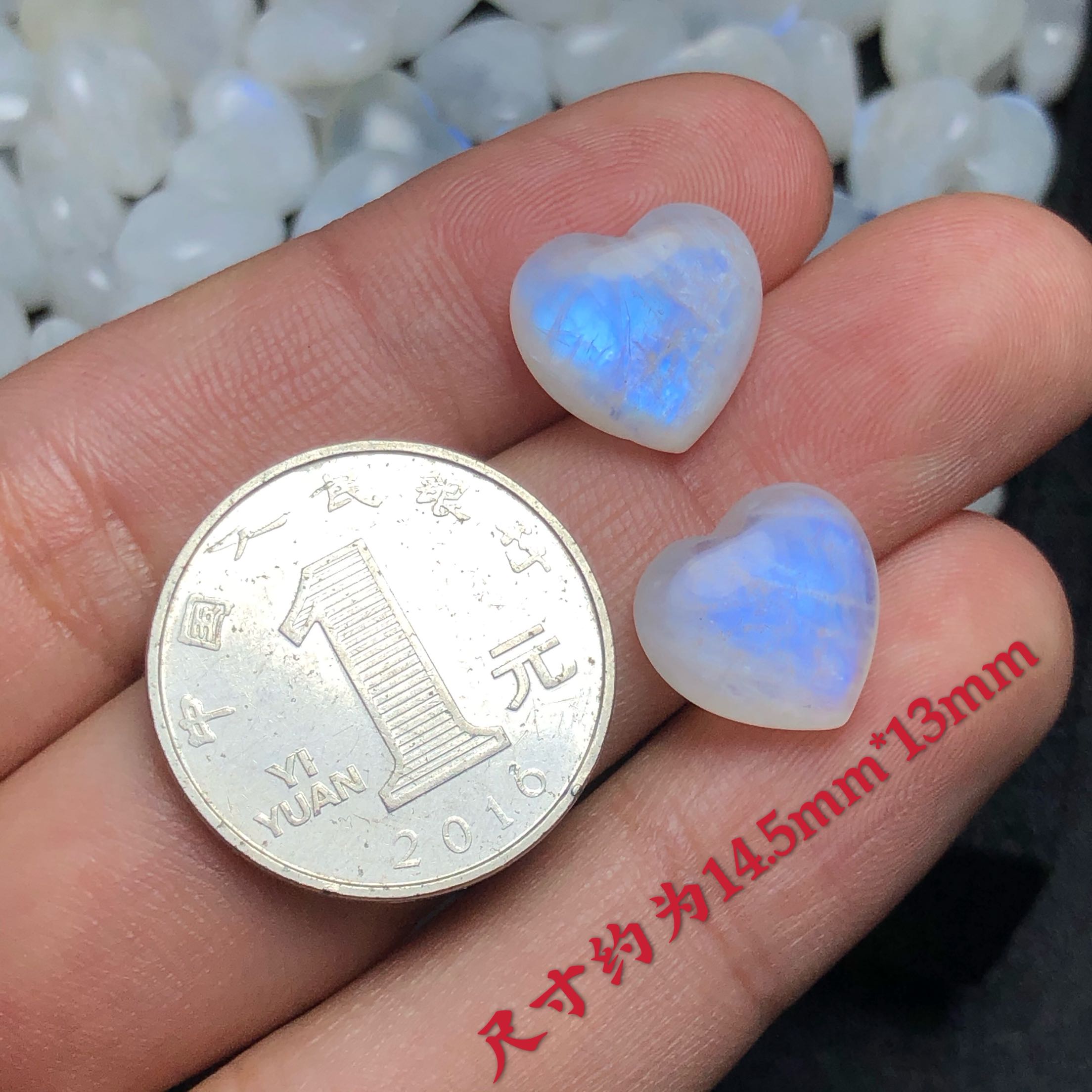 天然蓝月光吊坠爱心裸石白月光DIY编绳镶嵌手链项链耳坠打孔定制