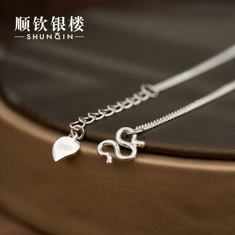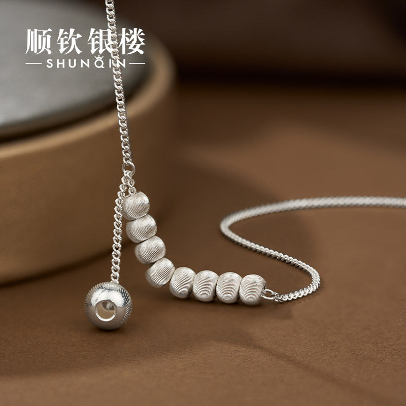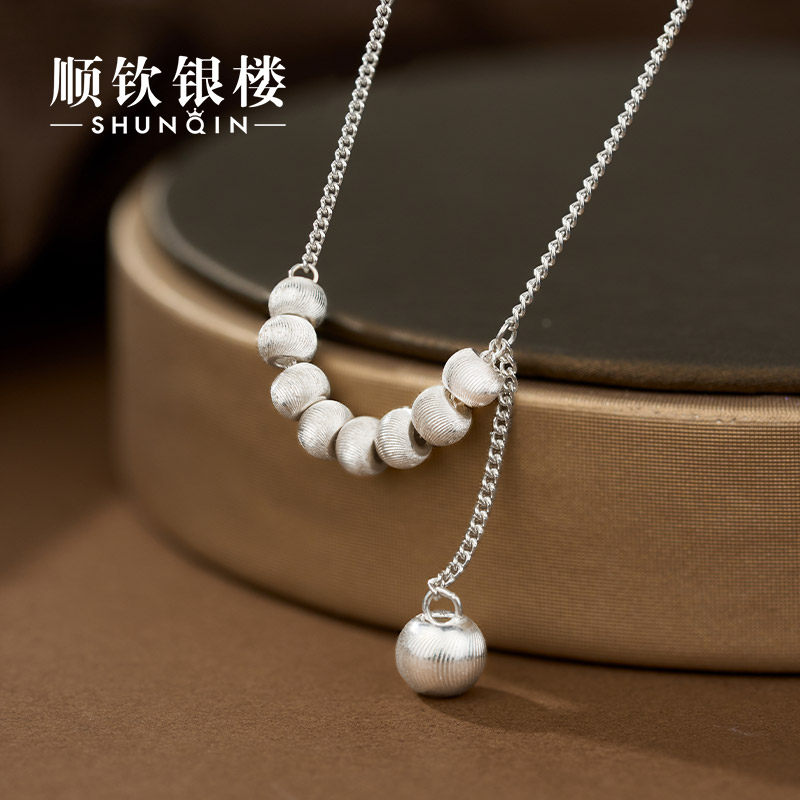 顺钦银楼S9999足银可晴项链女拉丝圆珠小众百搭通勤纯银锁骨链