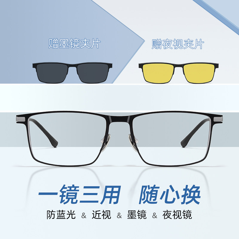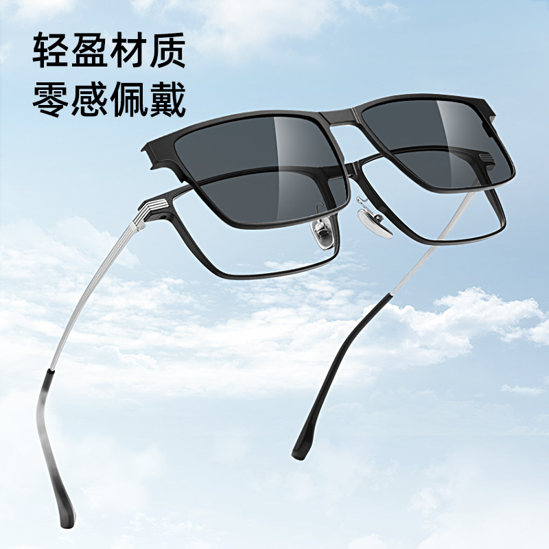 磁吸眼镜近视男款二合一铝镁偏光套镜可配度数墨镜开车专用镜框潮