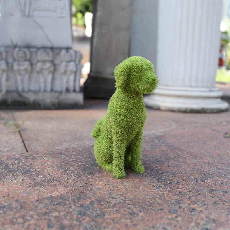欧式户外庭院草地绿色仿真植绒小狗摆件阳台花园橱窗拍照装饰动物