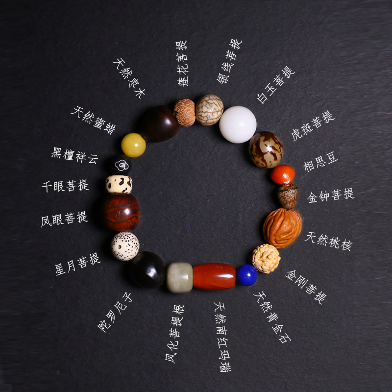 极速菩提十八子手串天然多v宝珠原籽白玉星月金刚菩提子佛珠手链