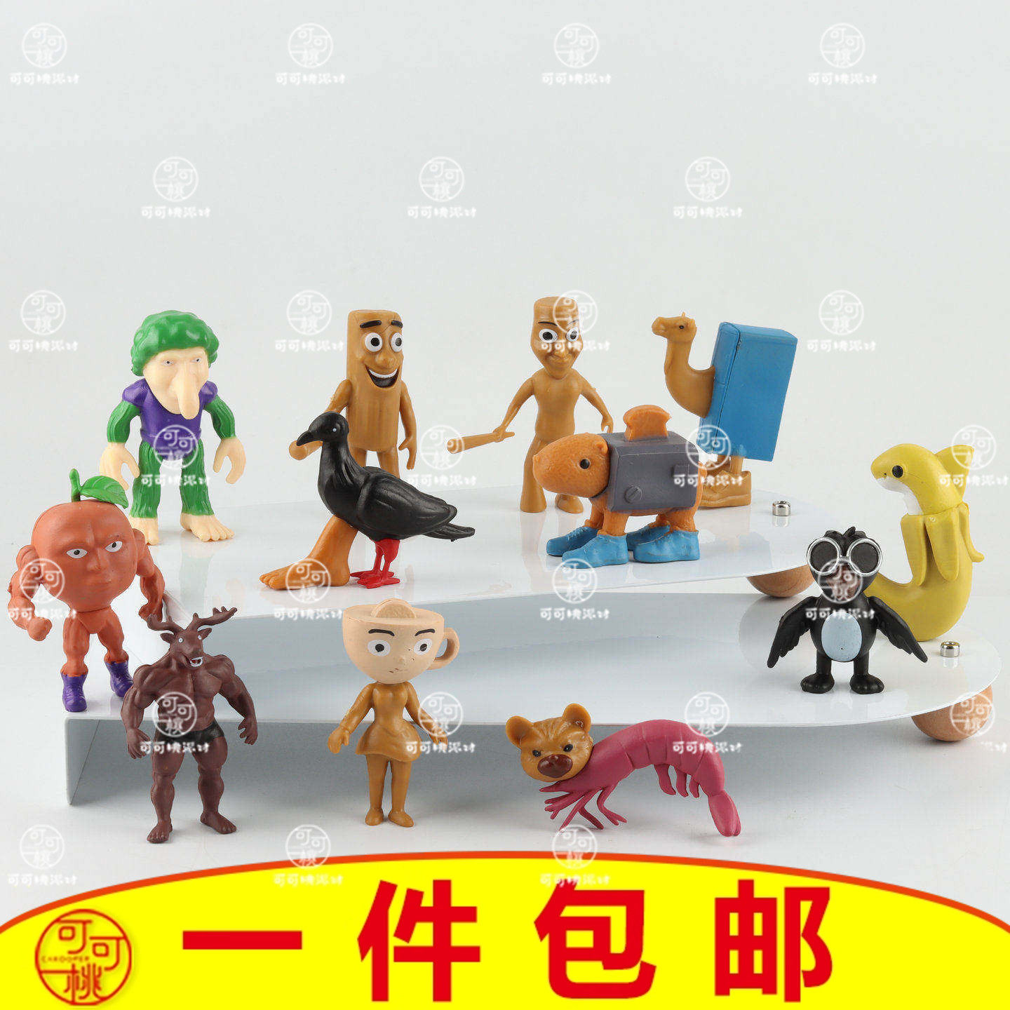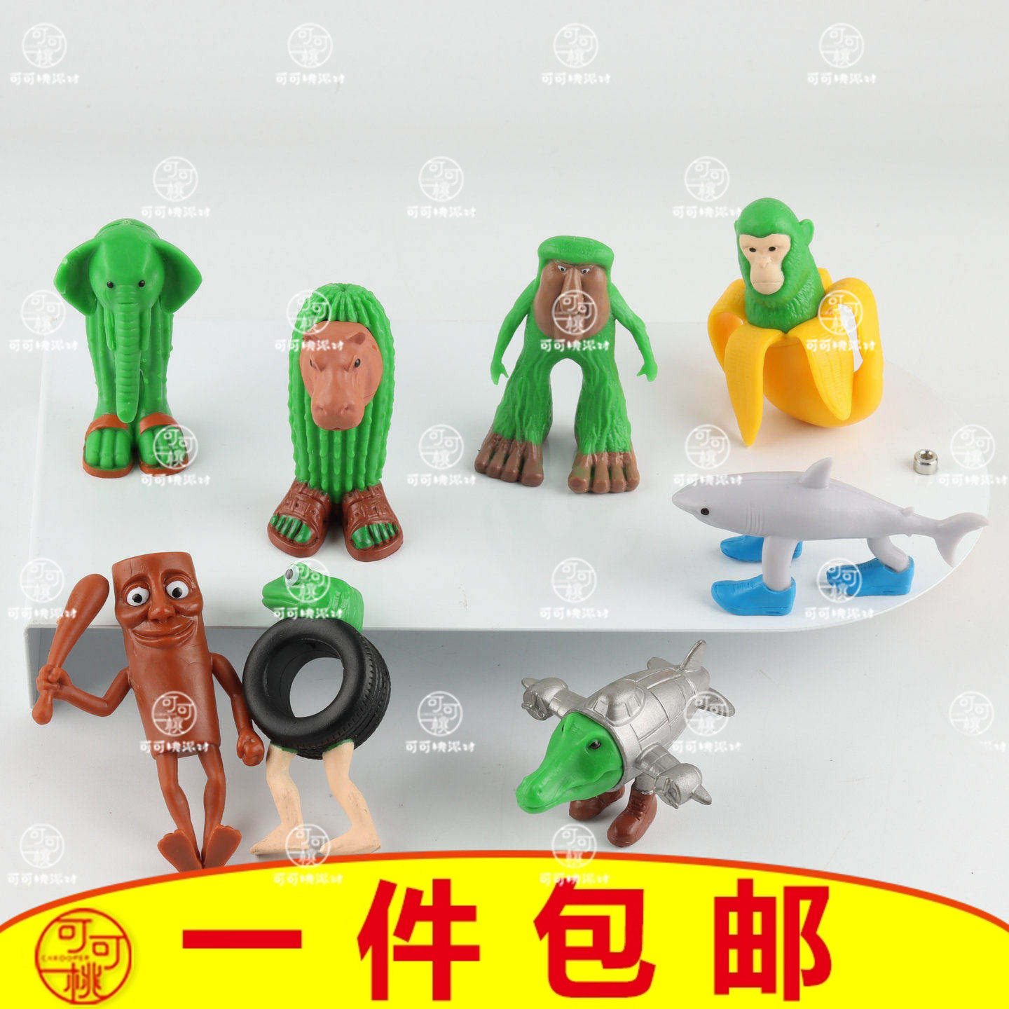 山海经穿鞋的鲨鱼木棍人模型公仔手办蛋糕装饰烘焙摆件果树叶插件