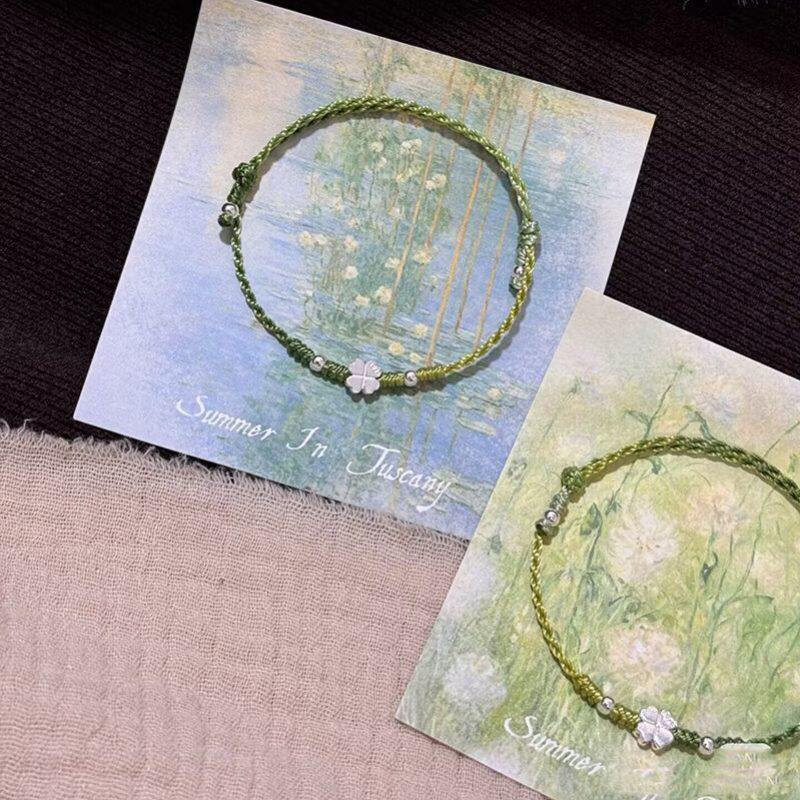 ins风绿意盎然四叶草手工编织手链小众独特幸运星百搭可调节手链