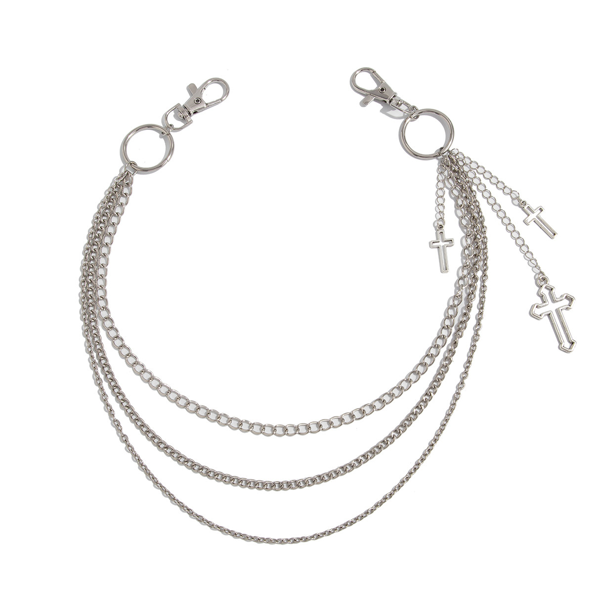 多层次十字架磨链裤链 高级欧美风女吊坠时尚个性简约气质长裤链
