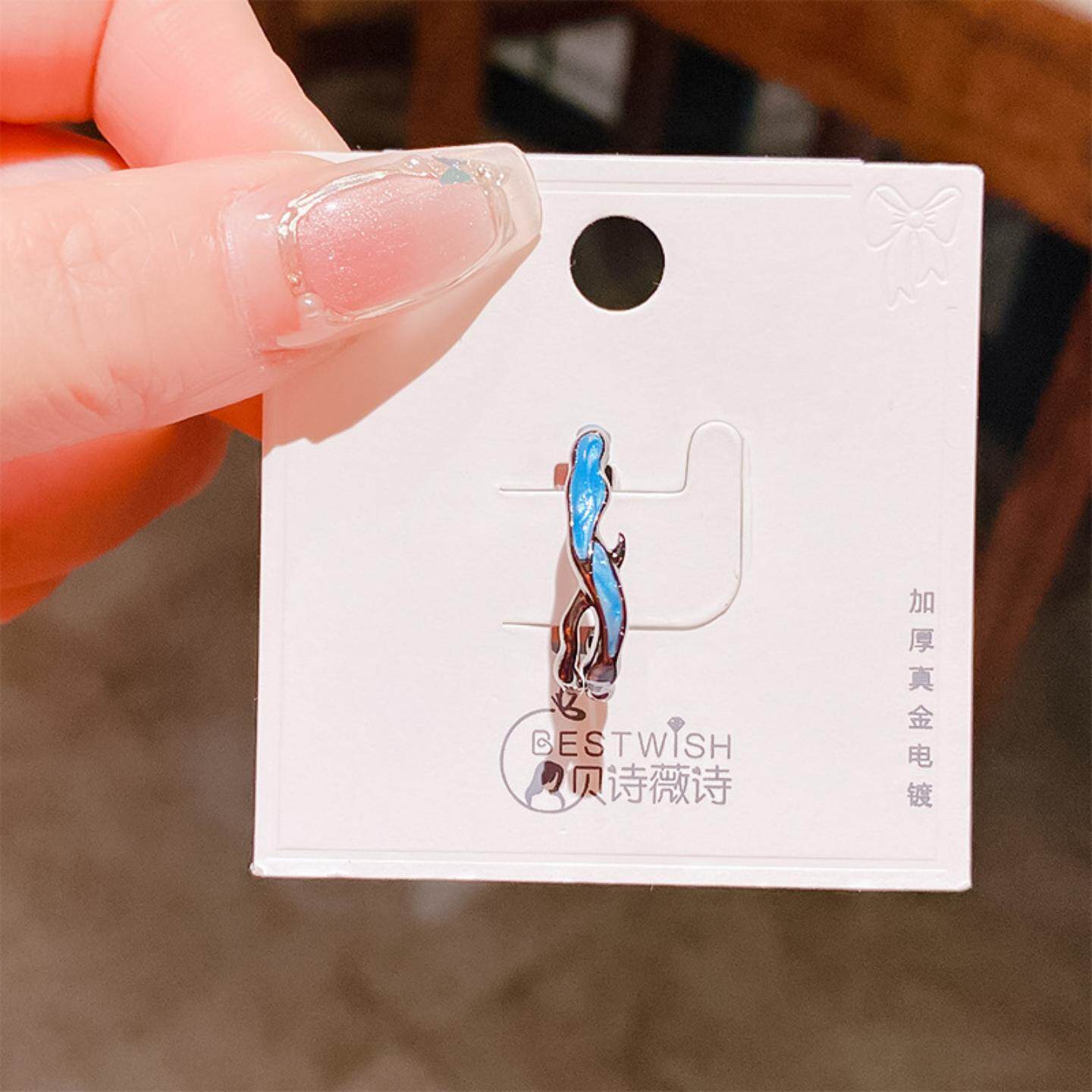 2026精致蓝色滴釉复古开口戒指 简约冷淡风百搭个性开口气质戒指