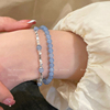 海蓝宝碎银子双层叠戴手链女蓝色串珠手串学生党闺蜜小众精致手饰