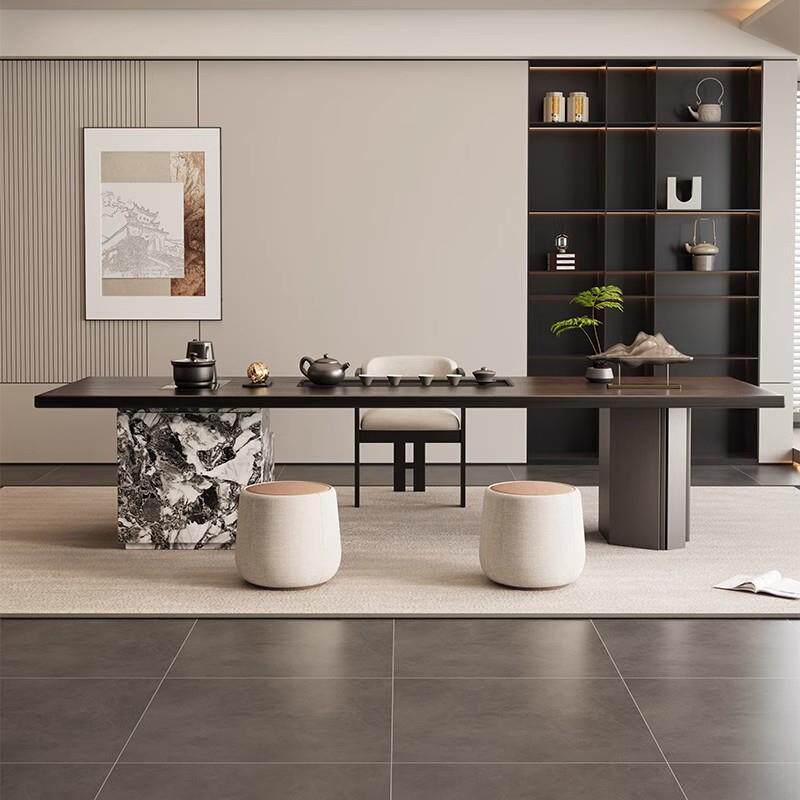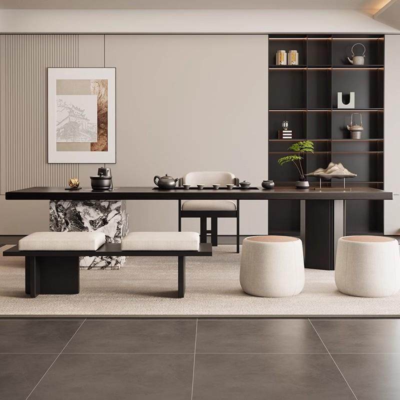多功能实木岛台茶台茶桌椅组合一桌五椅办公室轻奢2025新款高级感