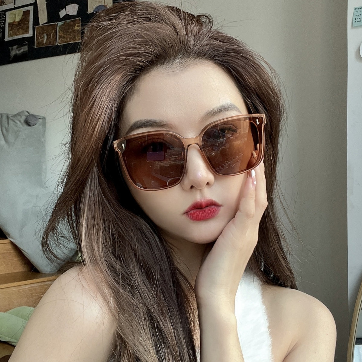 2024新款墨镜方形大脸显瘦白色gm太阳眼镜女款高级感海边度假防晒