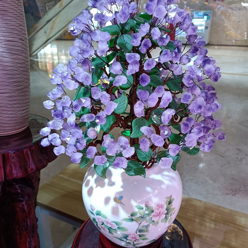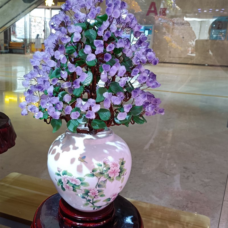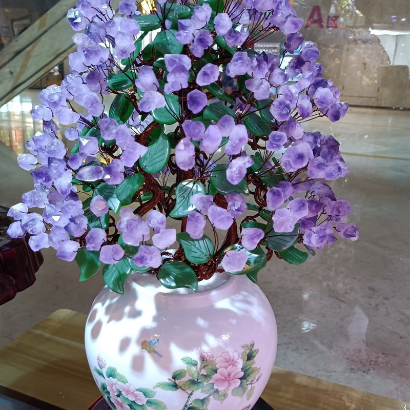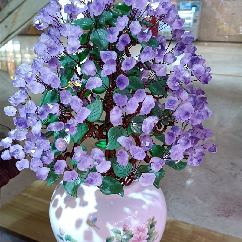 紫水晶发财树黄水晶摇钱树家居摆件客厅玄关酒柜店铺开.业乔迁送