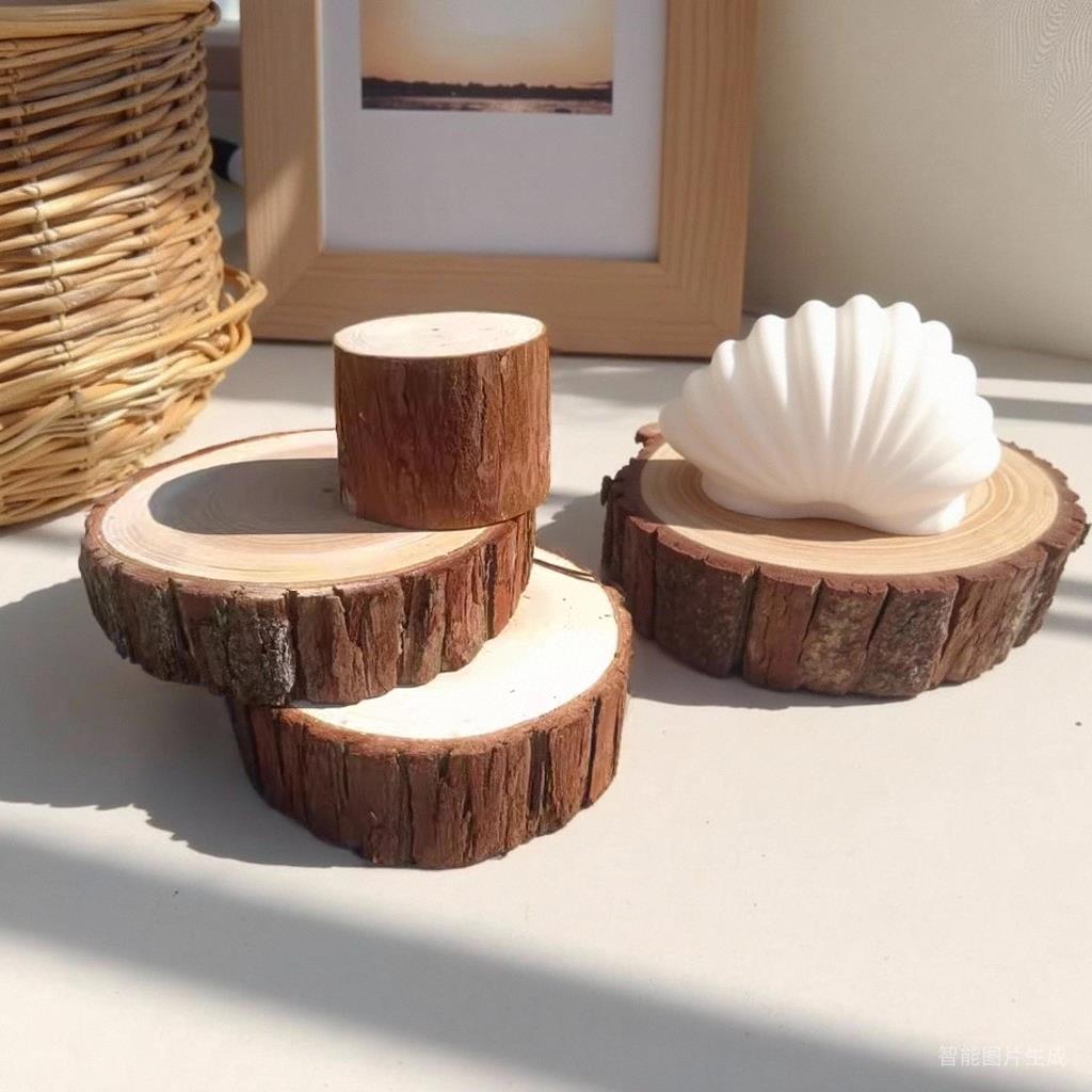 圆形木头盲盒底座桌面小摆件杉树拍照道具实木装饰木桩树桩树根