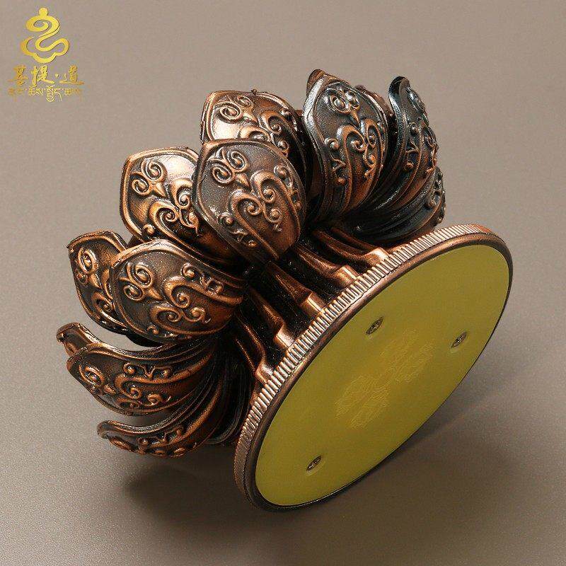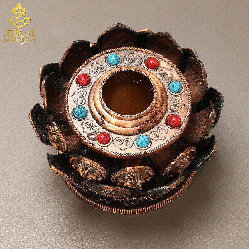 藏式手摇转筒底座藏族转金轮家用摆件手转转金筒底托托莲花底座