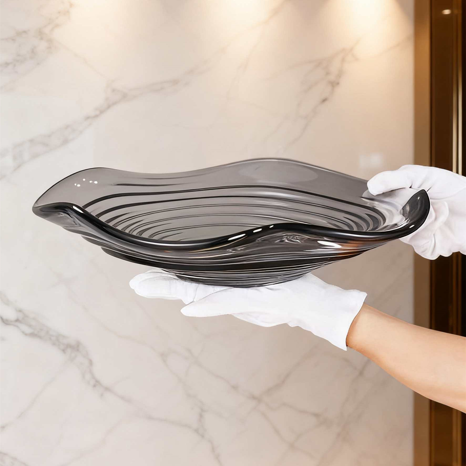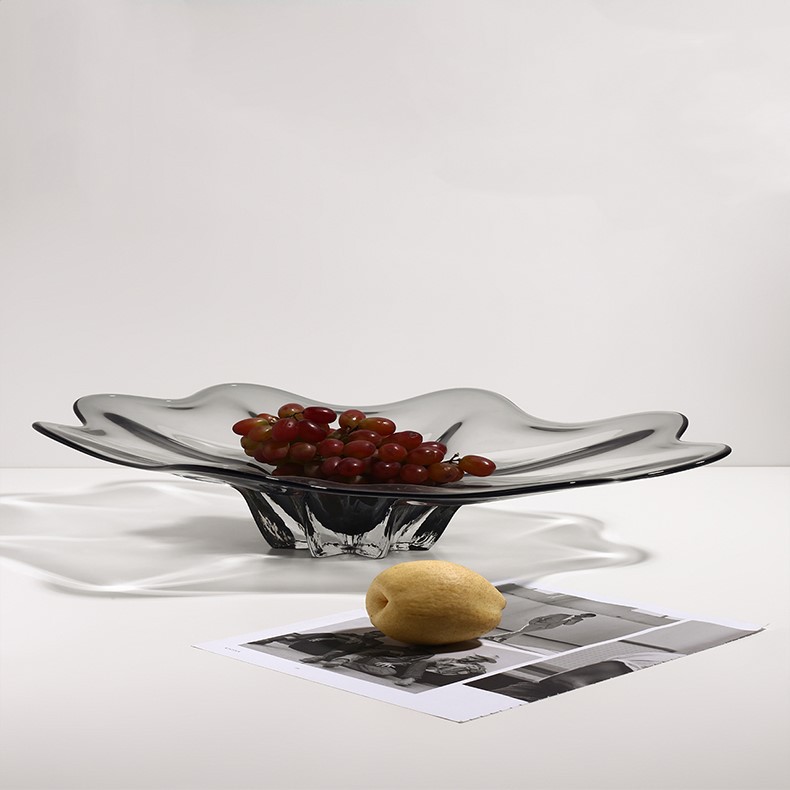 现代简约琉璃果盘家用轻奢茶几客厅盘子玻璃水果盘果篮ktv灰色