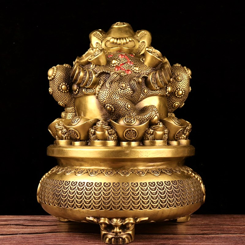 大号铜聚宝盆金蟾八方纳财四方招财进宝七星金蟾家居店铺柜台摆件
